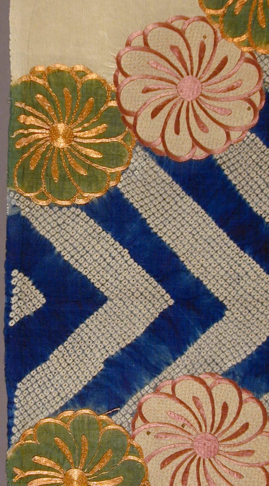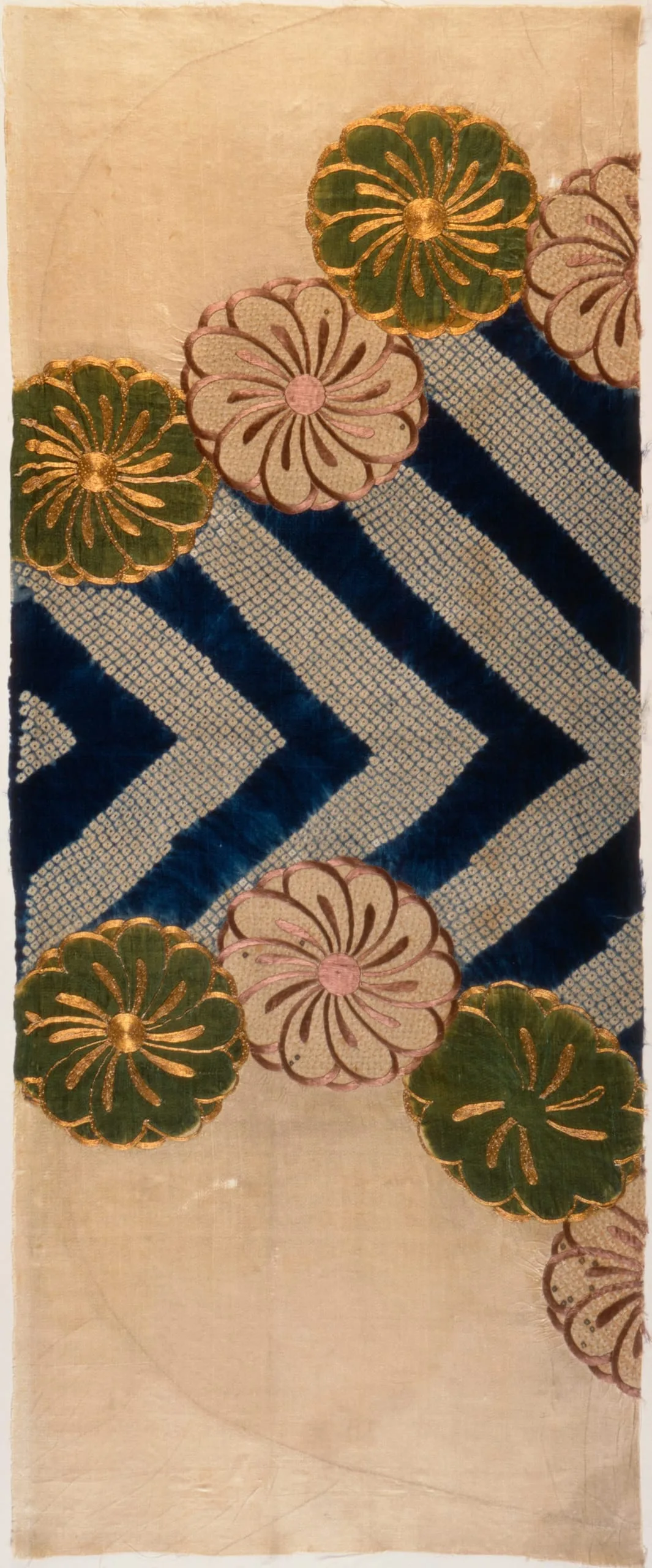 - Kosode (Kimono) Fragment with Chrysanthemums and Chevron Pattern