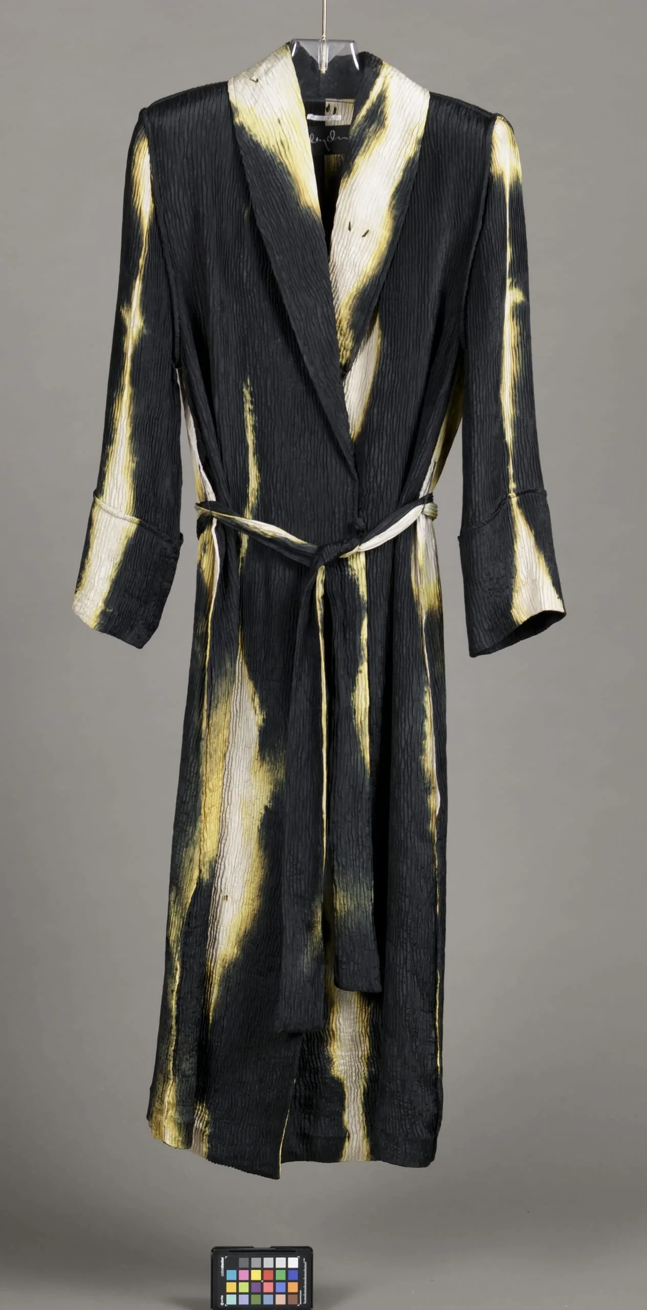 - Silk with heat set pleats, discharge and clamp-resist dyed