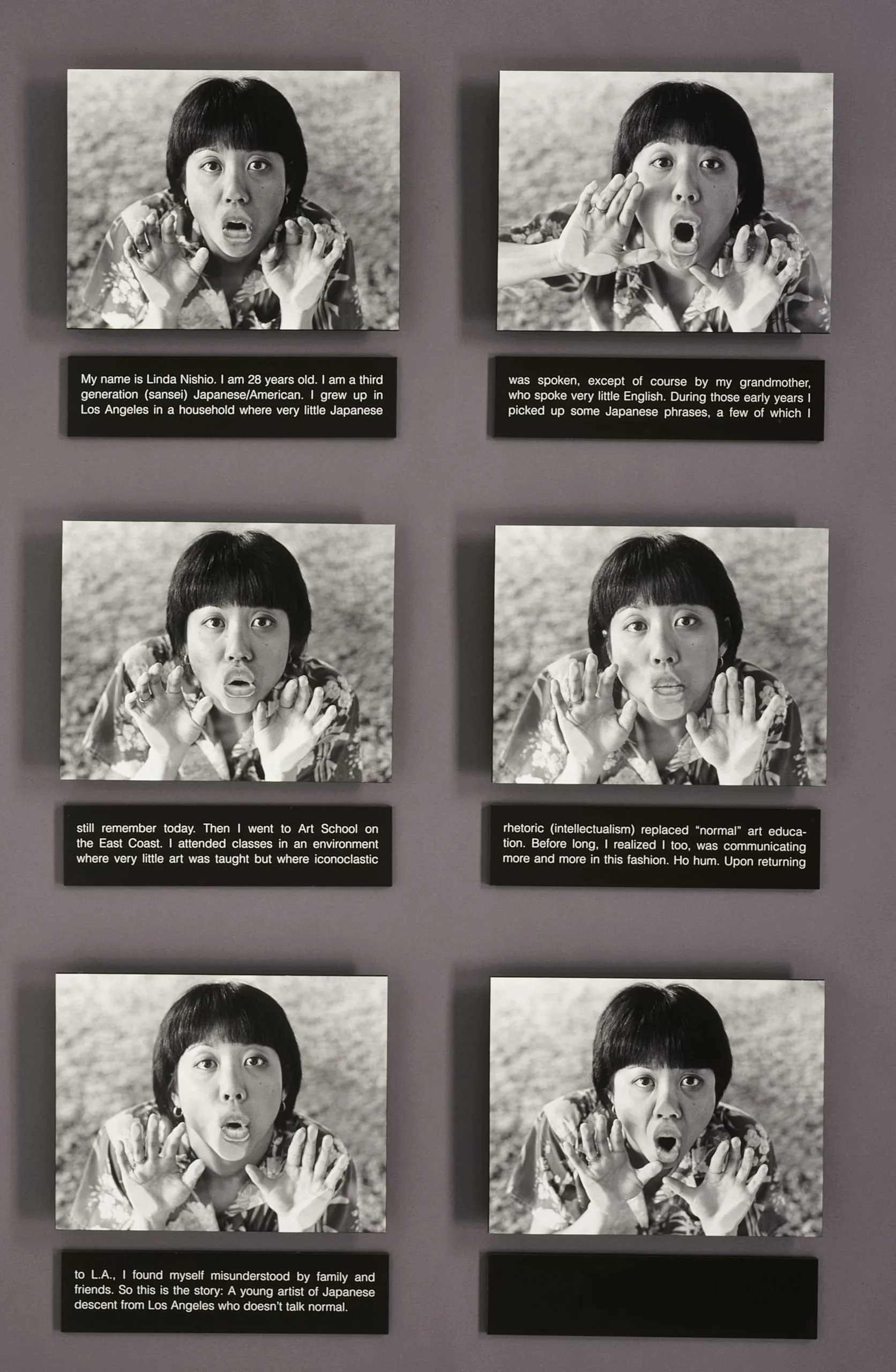 - Six gelatin-silver prints, with six accompanying text panels; glass sheet