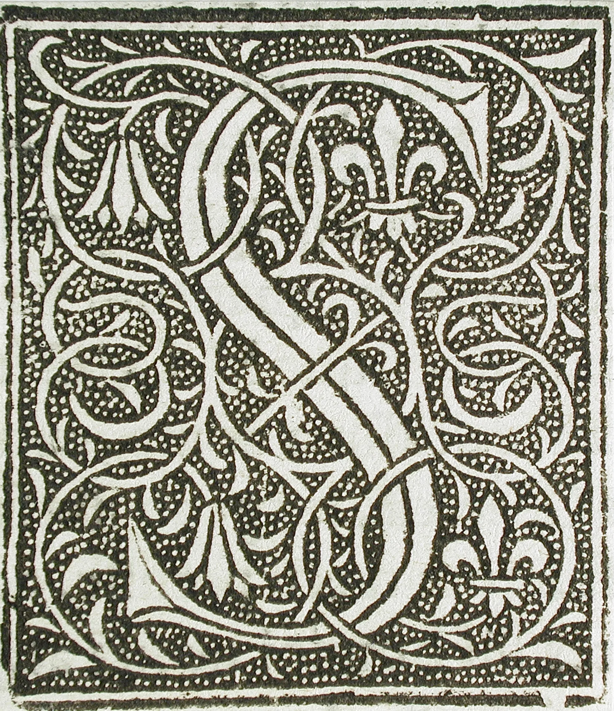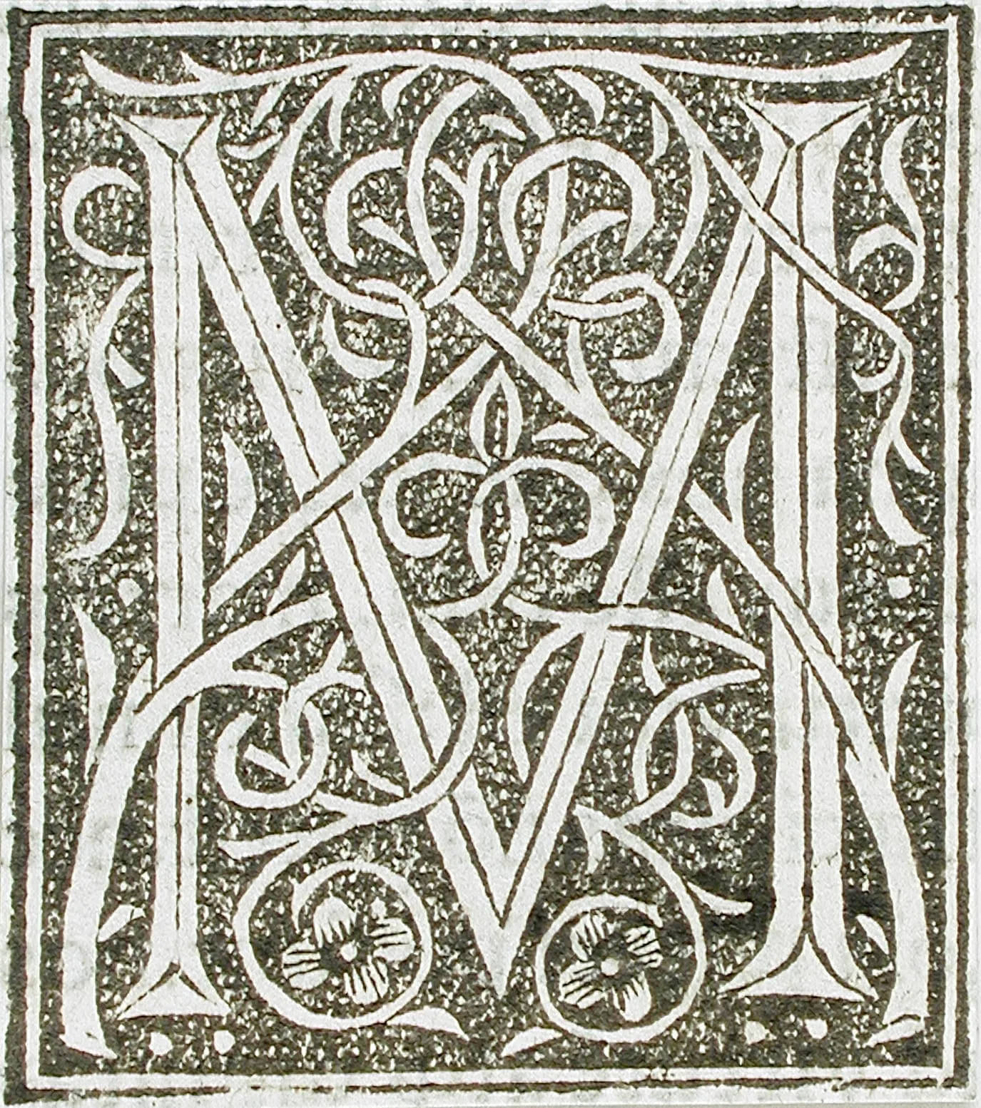 Sixteen Ornamental Letters (C, E, M, N, Q, S, V)