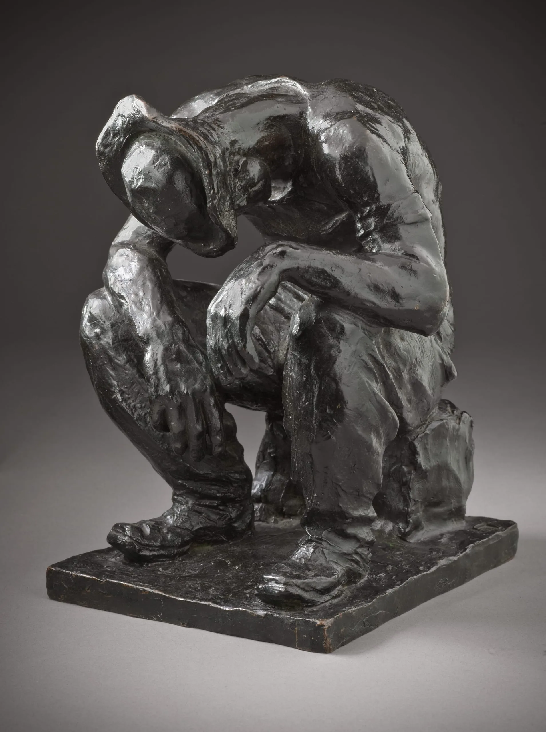 Young’s practice was to cast only one bronze at first and later to cast two or three at a time if needed. Although the sculpture was extensively exhibited in the United States during the first two decades of the century after its showing in the Paris Salon of 1904, the museum’s cast is the only located bronze example of Tired Out. It was cast in Paris, probably sometime between the successful exhibition of the plaster model and Young’s permanent return to the United States in 1905. The casting was done by A. A. Hébrard, a small foundry specializing in the lost-wax technique active around 1900.