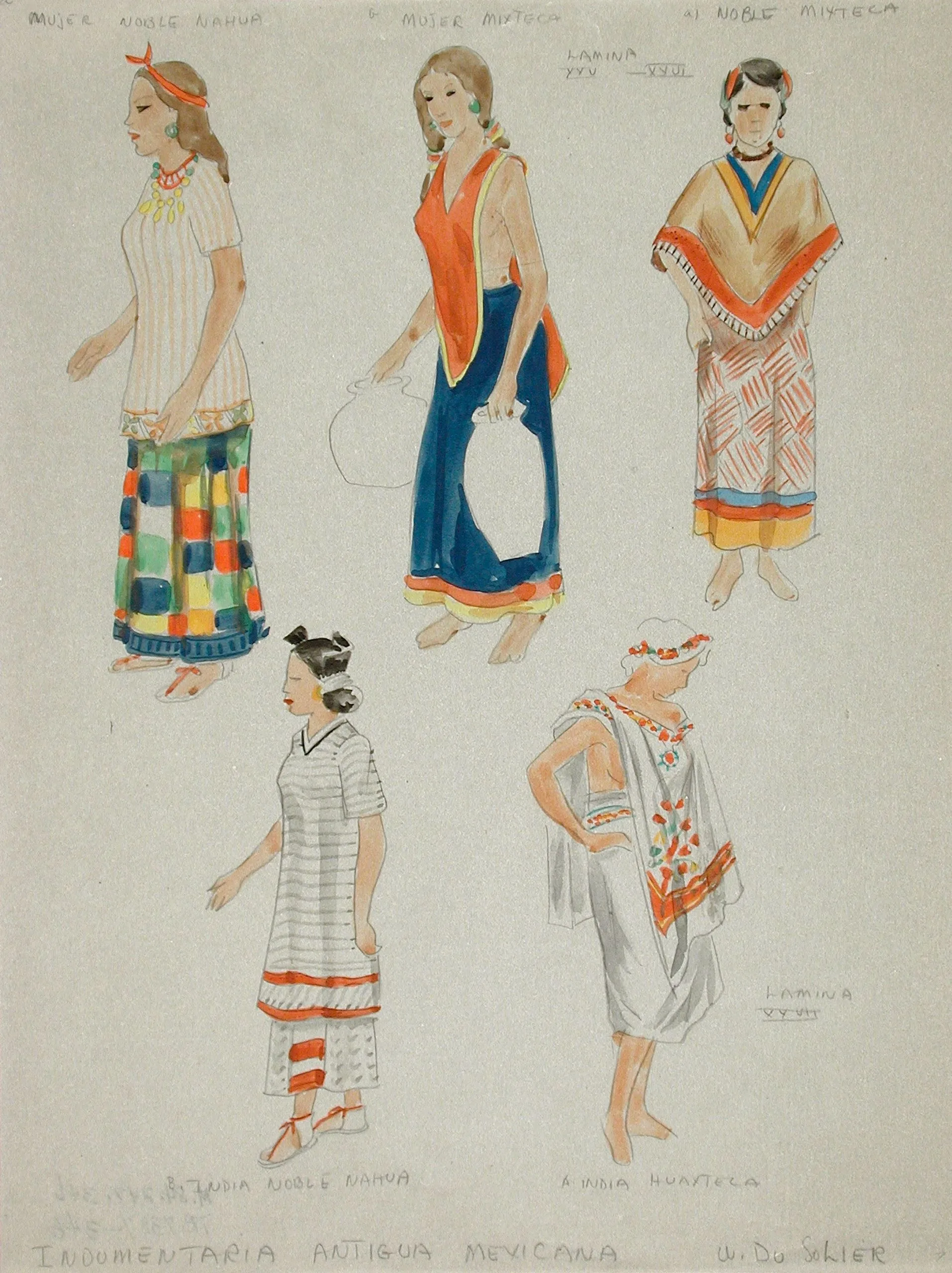- Tracing of W. du Solier's 'Ancient Mexican Costume,' Plates XXV a & b, XXVI a & b, and XXVII a
