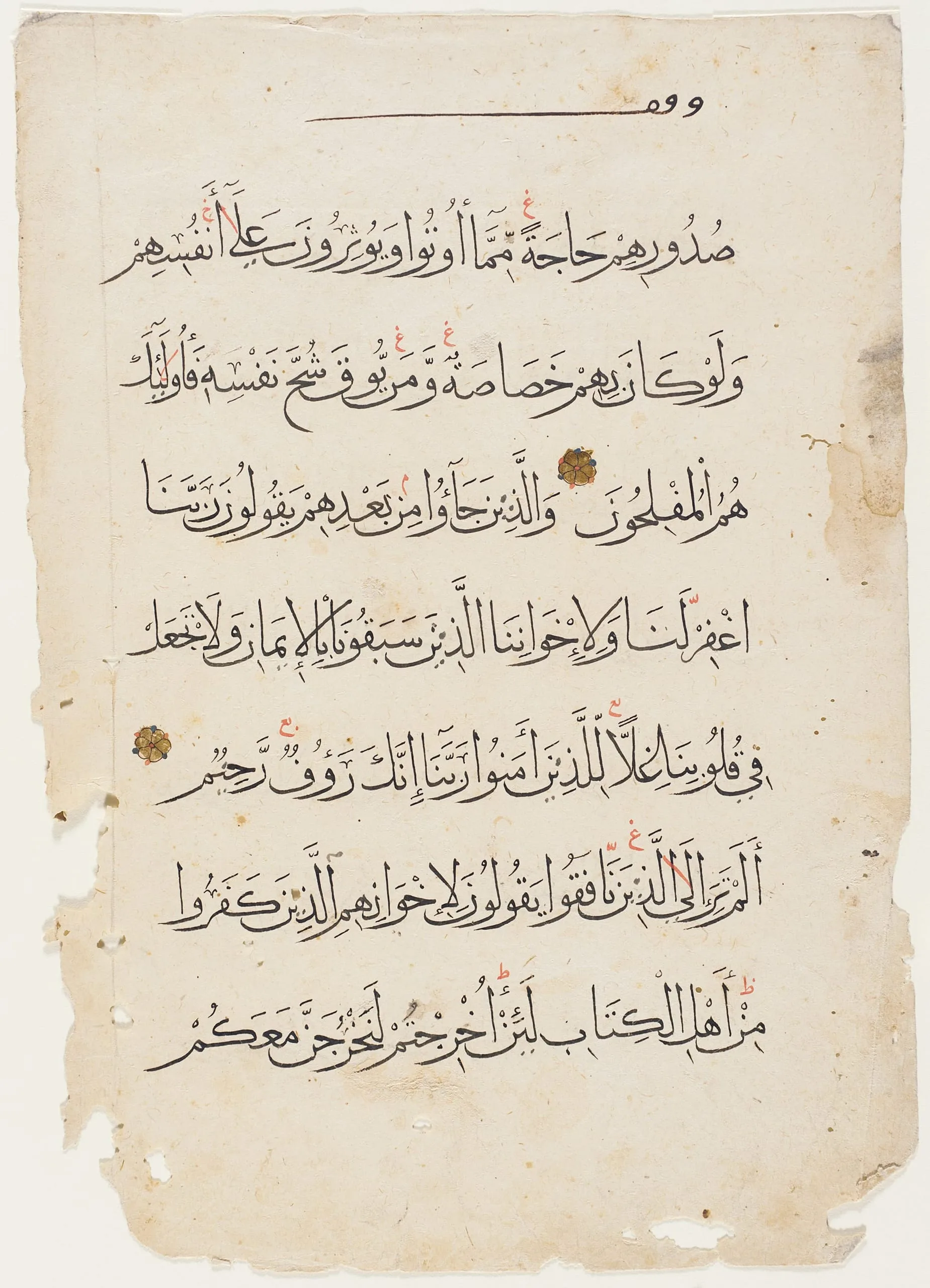 - Two pages from a Manuscript of the Qur'an (59:7-9; 59:9-11; and 61:12-14; 62:1-4)