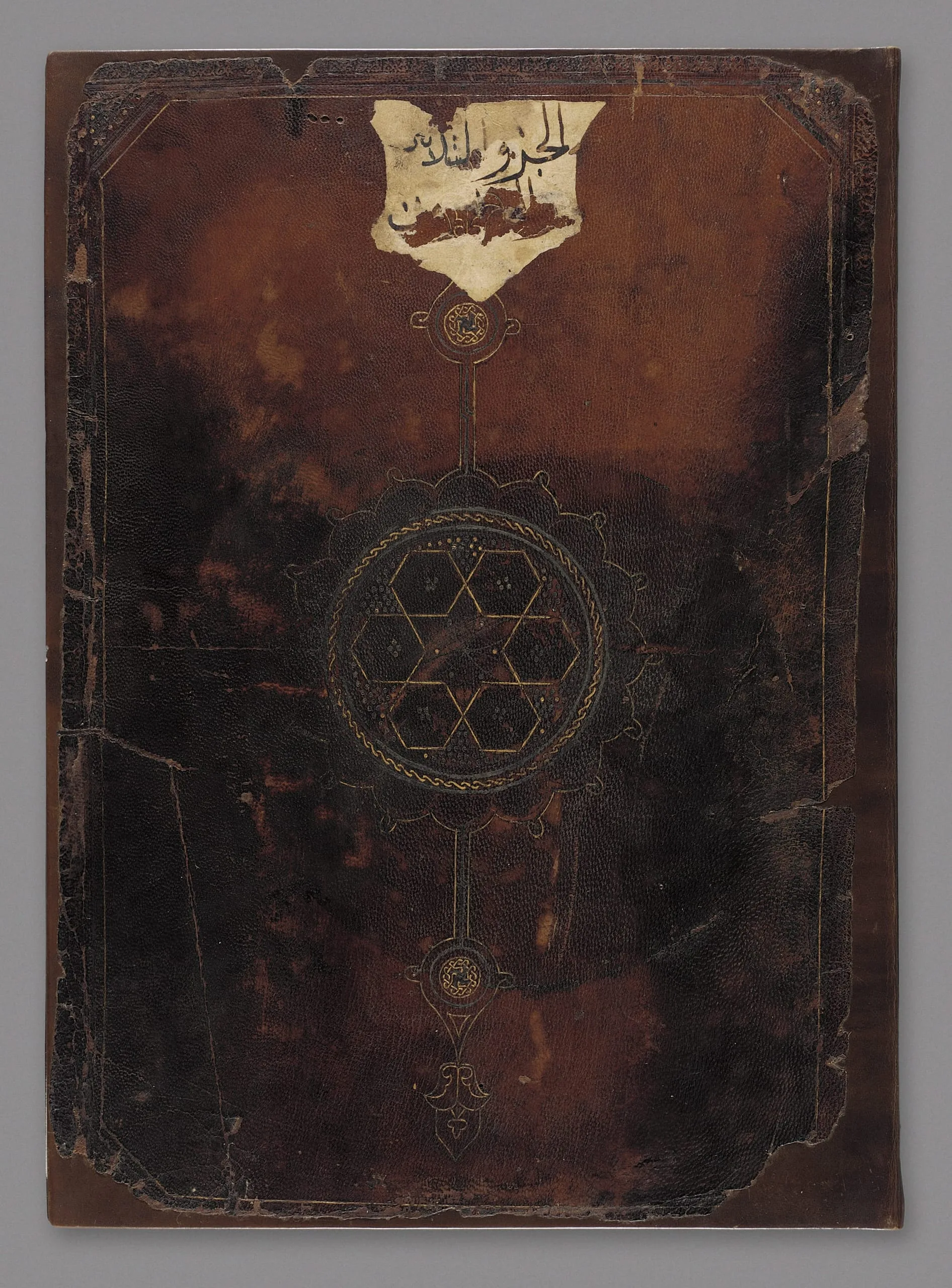 - Blind and gold tooled leather binding with block-pressed doublure