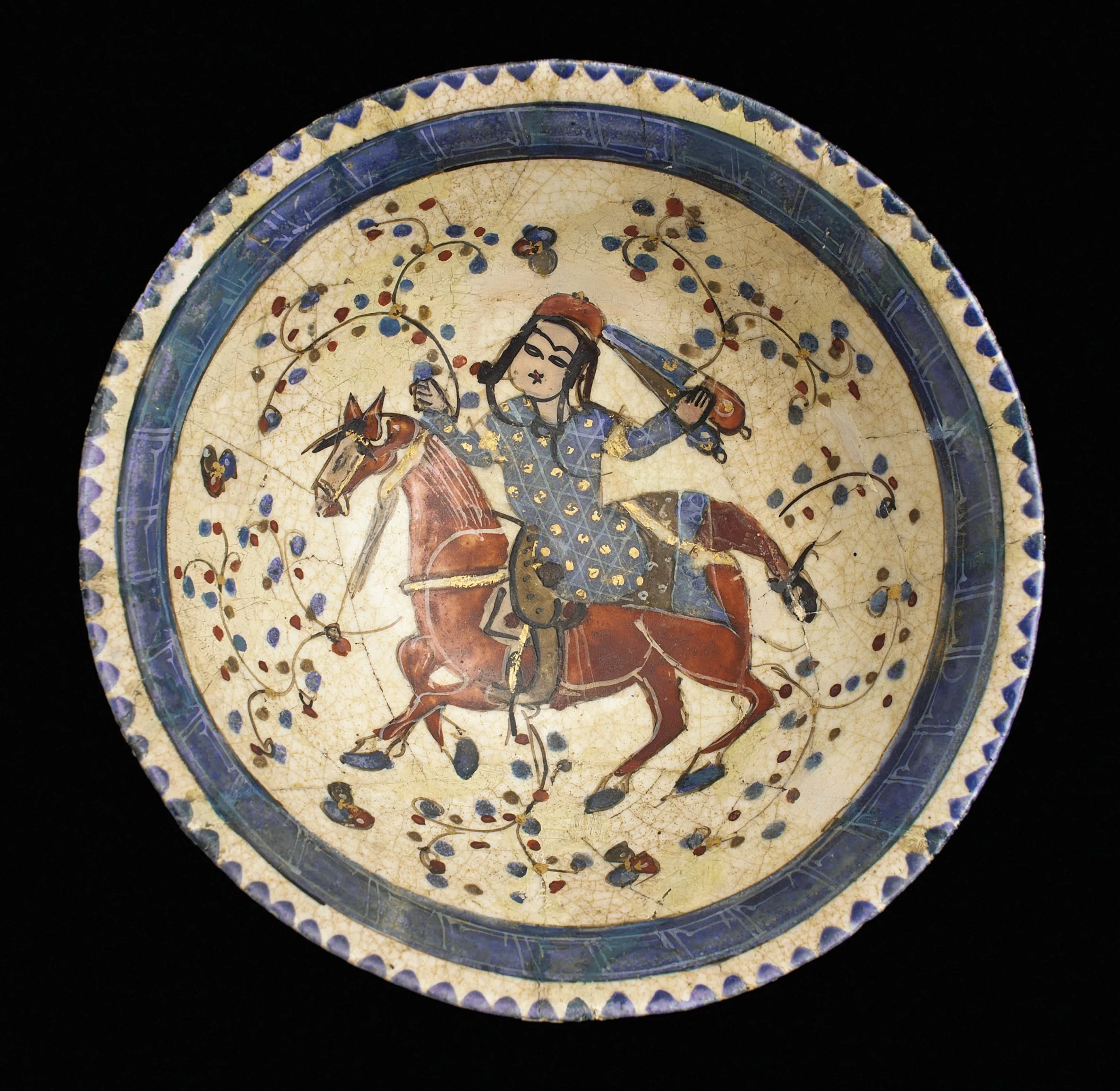 - Fritware, underglaze-painted and overglaze-enameled (mina’i)