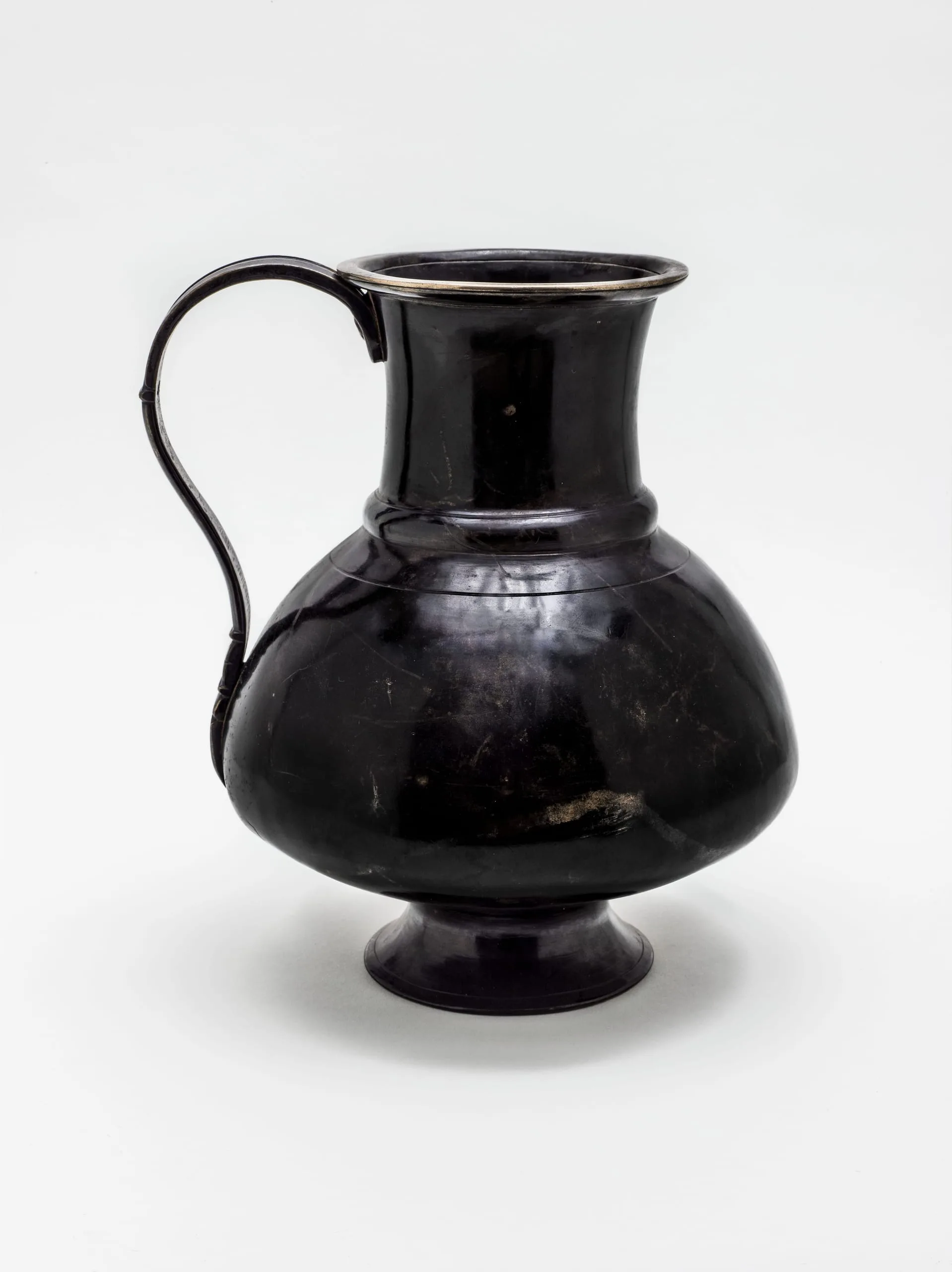 The remarkable simplicity of this bronze ewer draws attention to its elegantly balanced shape, mirrorlike surface, and minimal decoration: an engraved line at its mouth and the top of the body. Despite its seeming unpretentiousness, the ewer would have been considered a luxury object due to its high level of craftsmanship and its fabrication in metal, a costly material.
