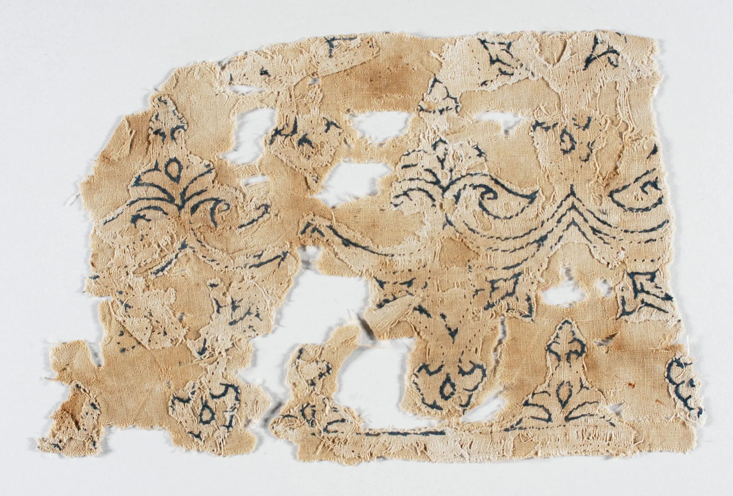 - Linen plain weave with linen plain weave applique and silk embroidery