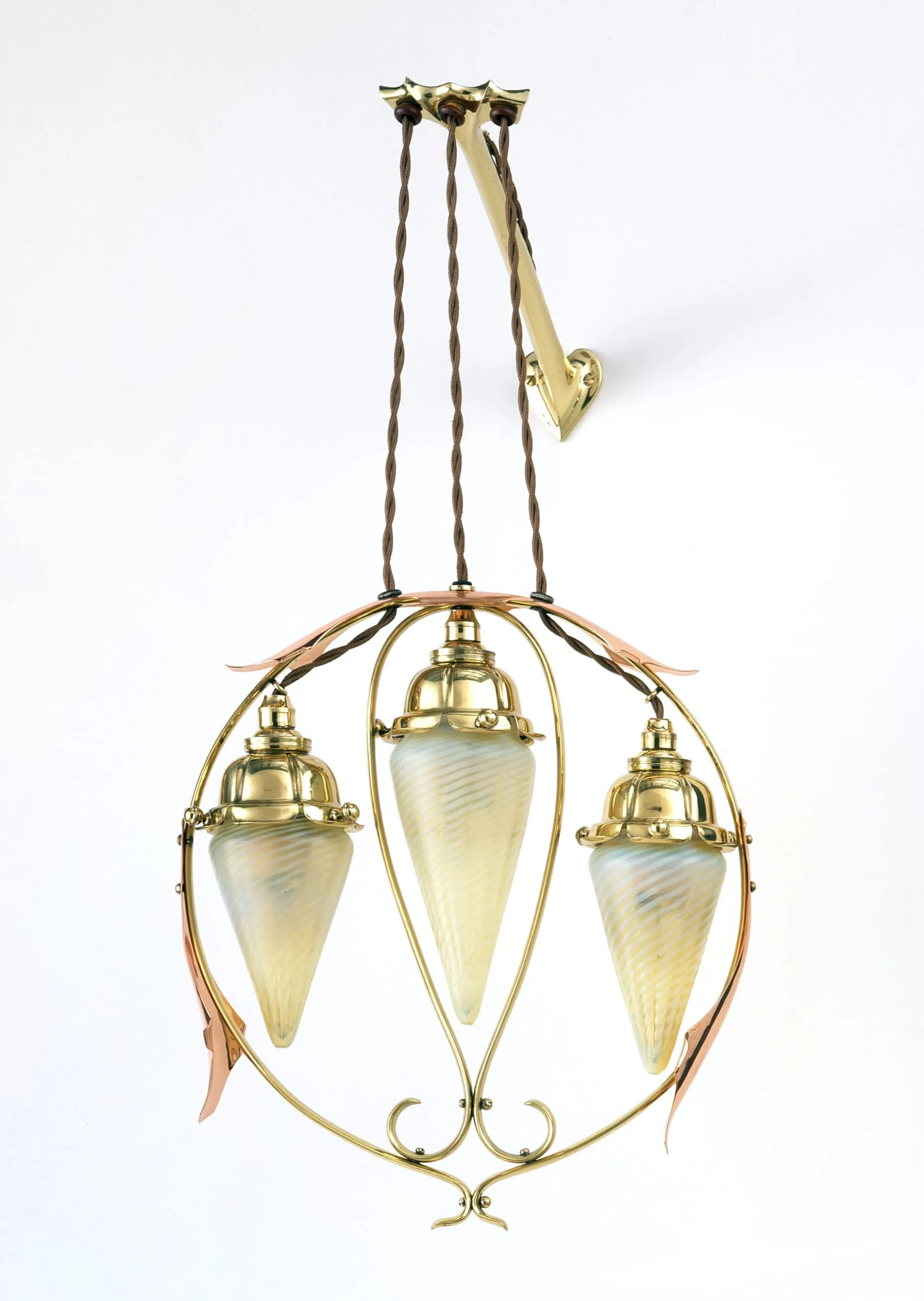 - Overall: 13 3/4 x 10 1/2 x 10 1/2 in. (34.93 x 26.67 x 26.67 cm); Wall mount: 10 3/4 x 2 7/8 x 2 in. (27.31 x 7.31 x 5.08 cm); Smaller glass shades: 4 3/4 x 2 5/8 in. (12.07 x 6.67 cm) each; d) Larger glass shade: 6 x 2 3/4 in. (15.24 x 6.99 cm)