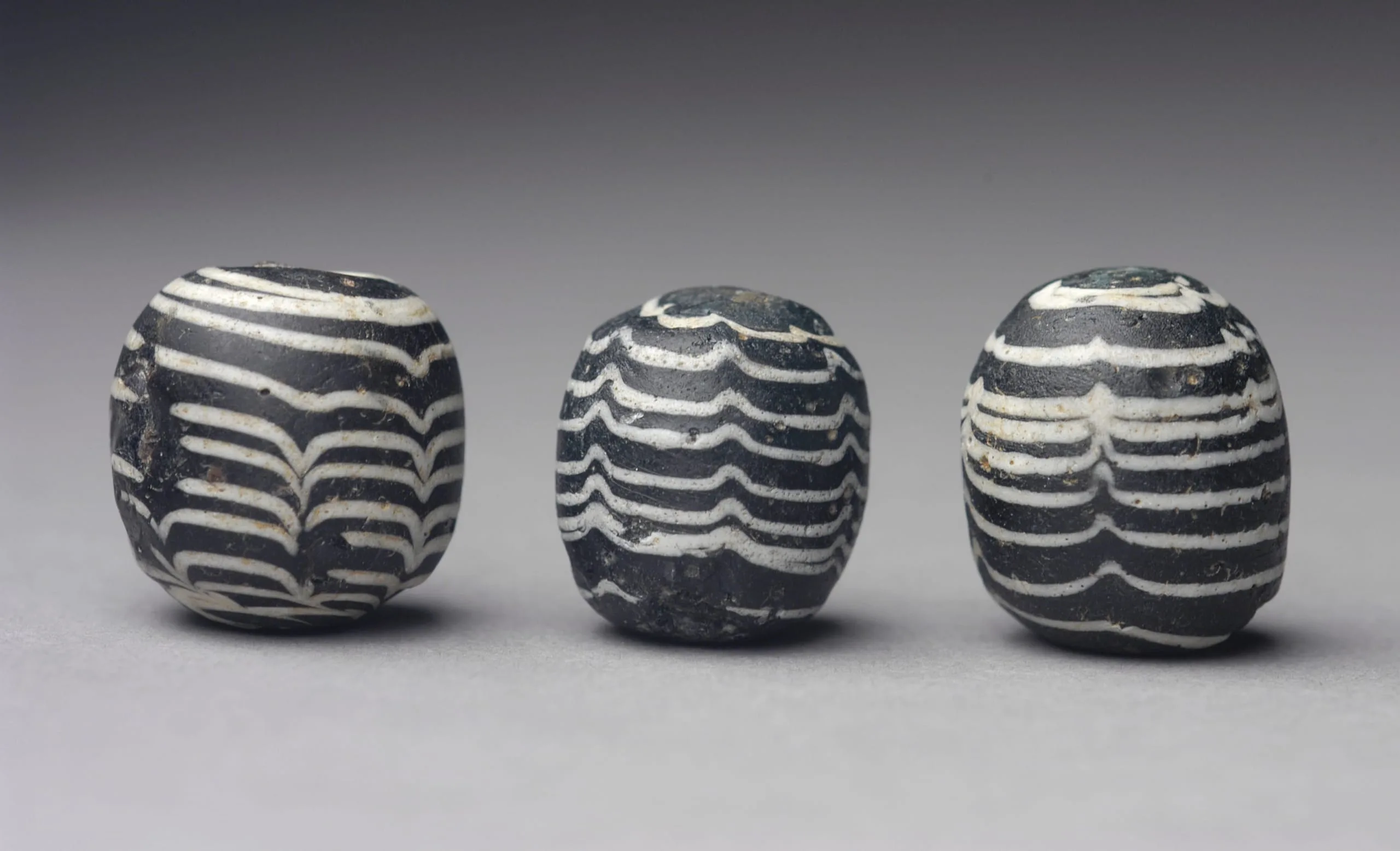 According to legend, chess was introduced to Iran from India in the sixth century AD and spread throughout the Islamic world after the seventh century. A strategic war game, it was made up of a king, his vizier (queen in the West), and four army branches: chariots (rook), elephants (bishop), cavalry (knight), and infantry (pawn). These small round glass pieces may be pawns. Glass pieces of different shapes, such as a king, but of similar style exist in other collections.