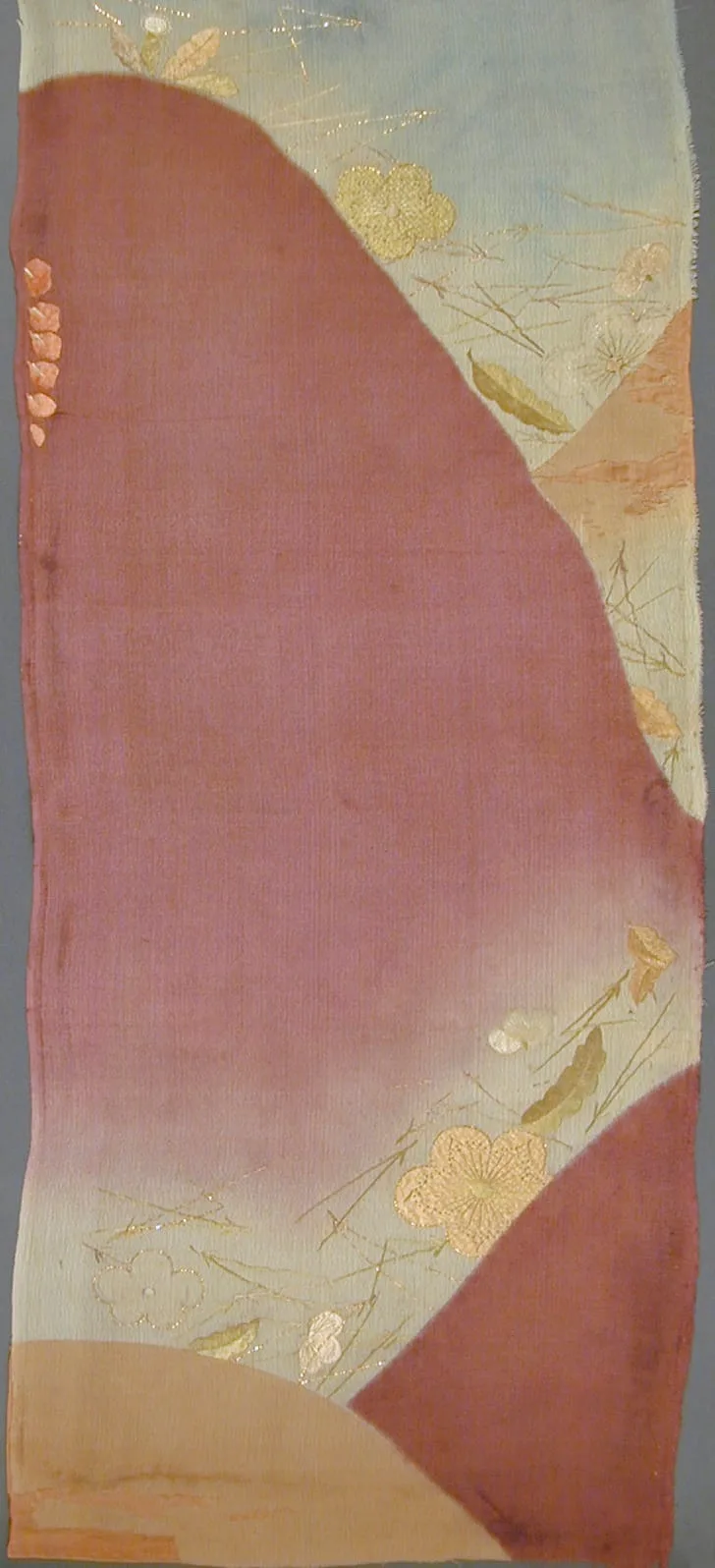 - Kosode (Kimono) Fragment with Mountain Forms, Pine Needles, Plum Blossoms, Dandelions, and Wisteria Blossoms