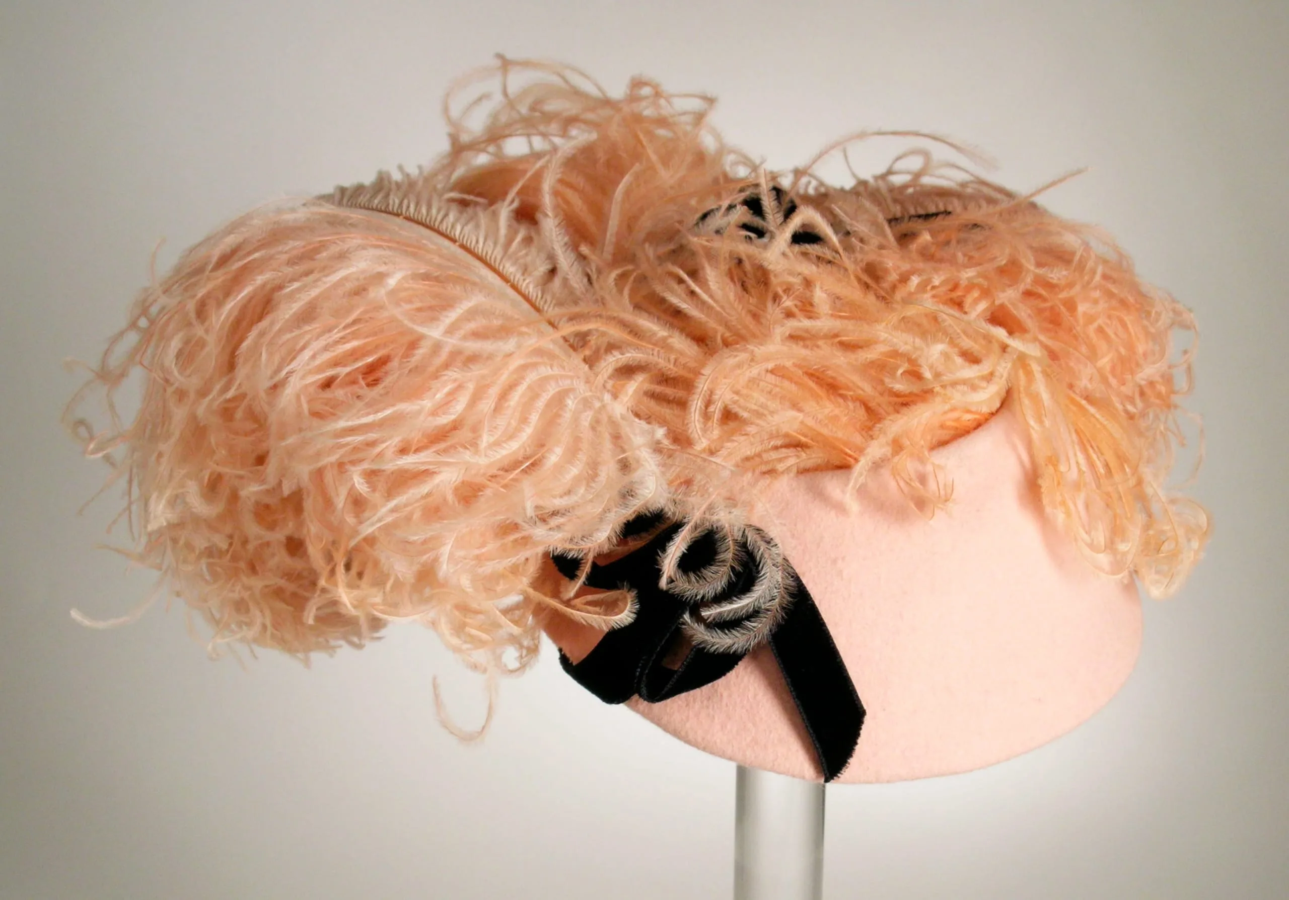 - Felt, ostrich feathers, velvet