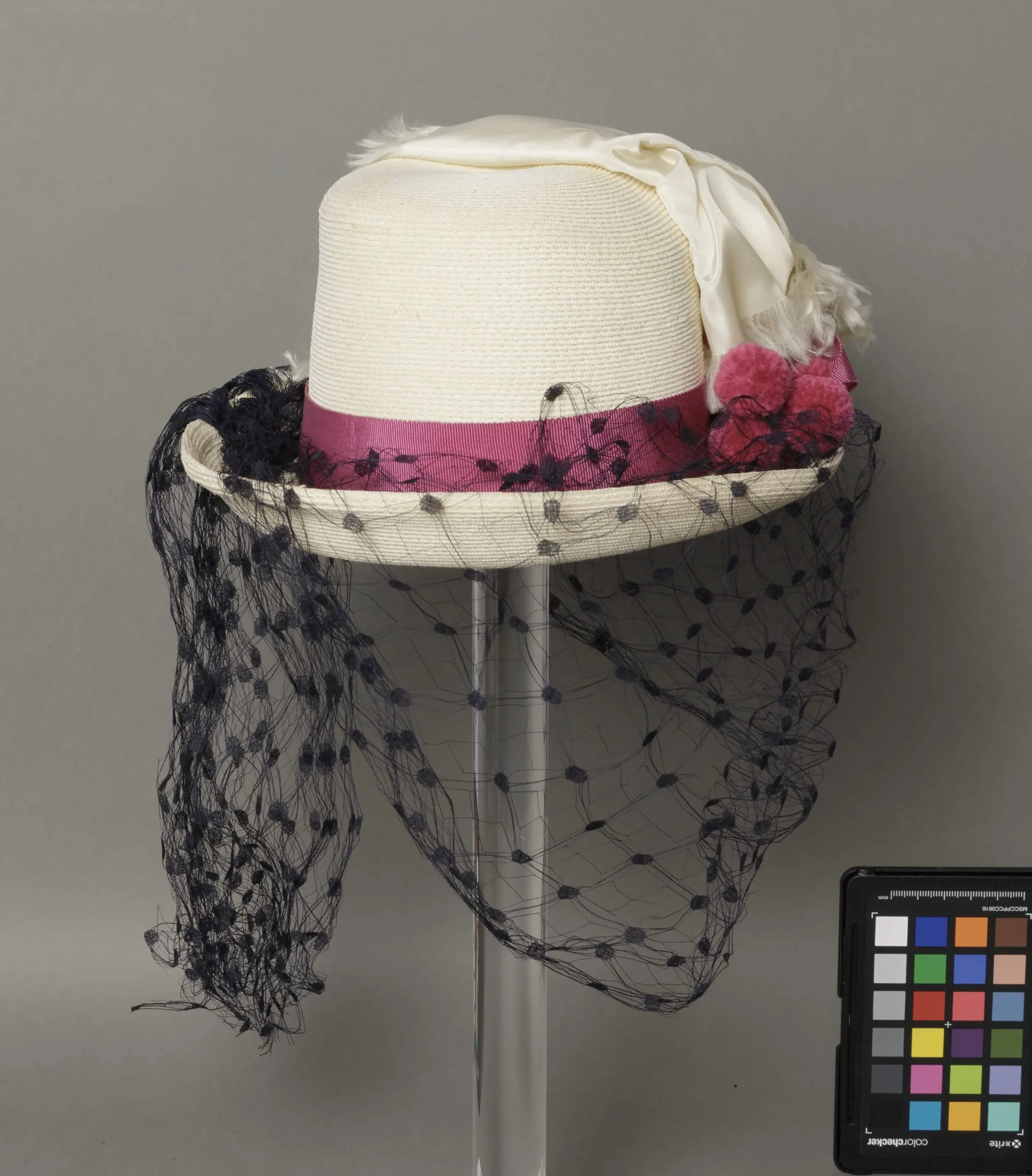 - Milan straw, grosgrain ribbon, yarn