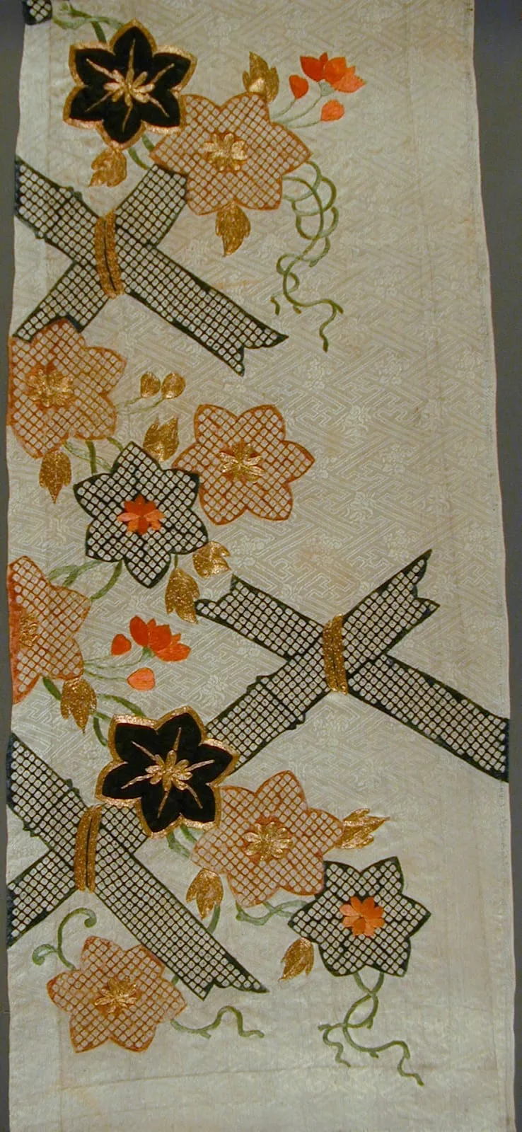 - Kosode (Kimono) Fragment with Bamboo Trellis and Clematis Blossums