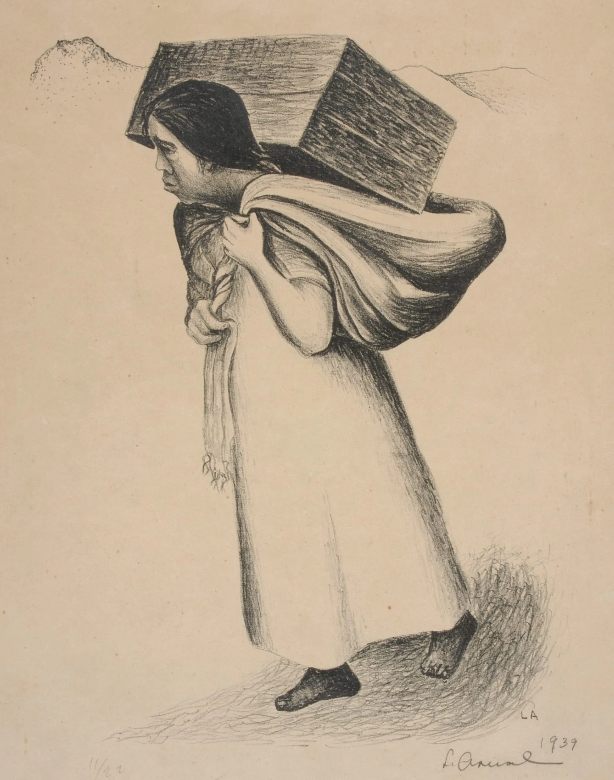 Woman with Rebozo Carrying a Box (Mujer con rebozo con caja a cuestas)