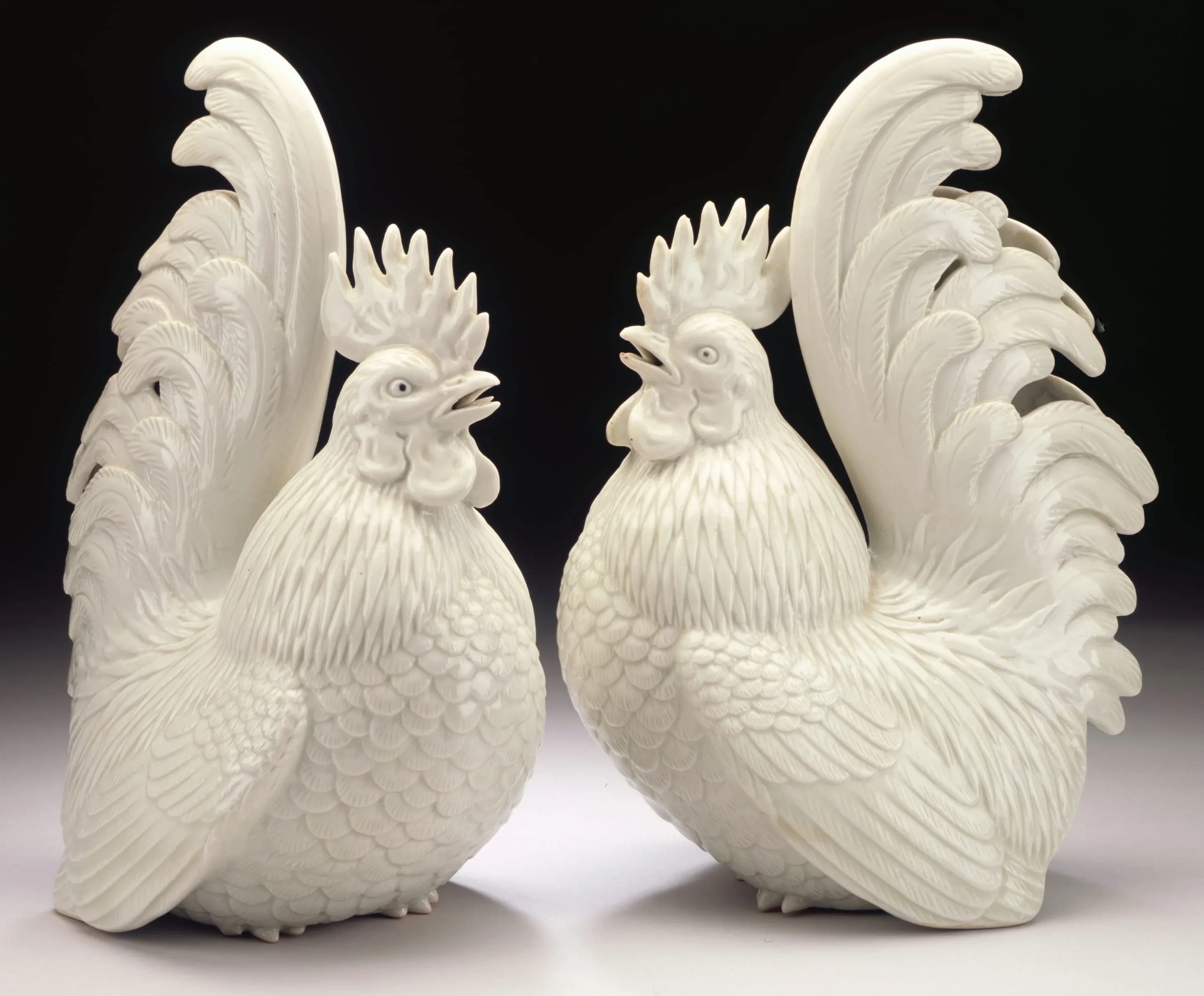 - Pair of Okimono in the Form of Cockerels