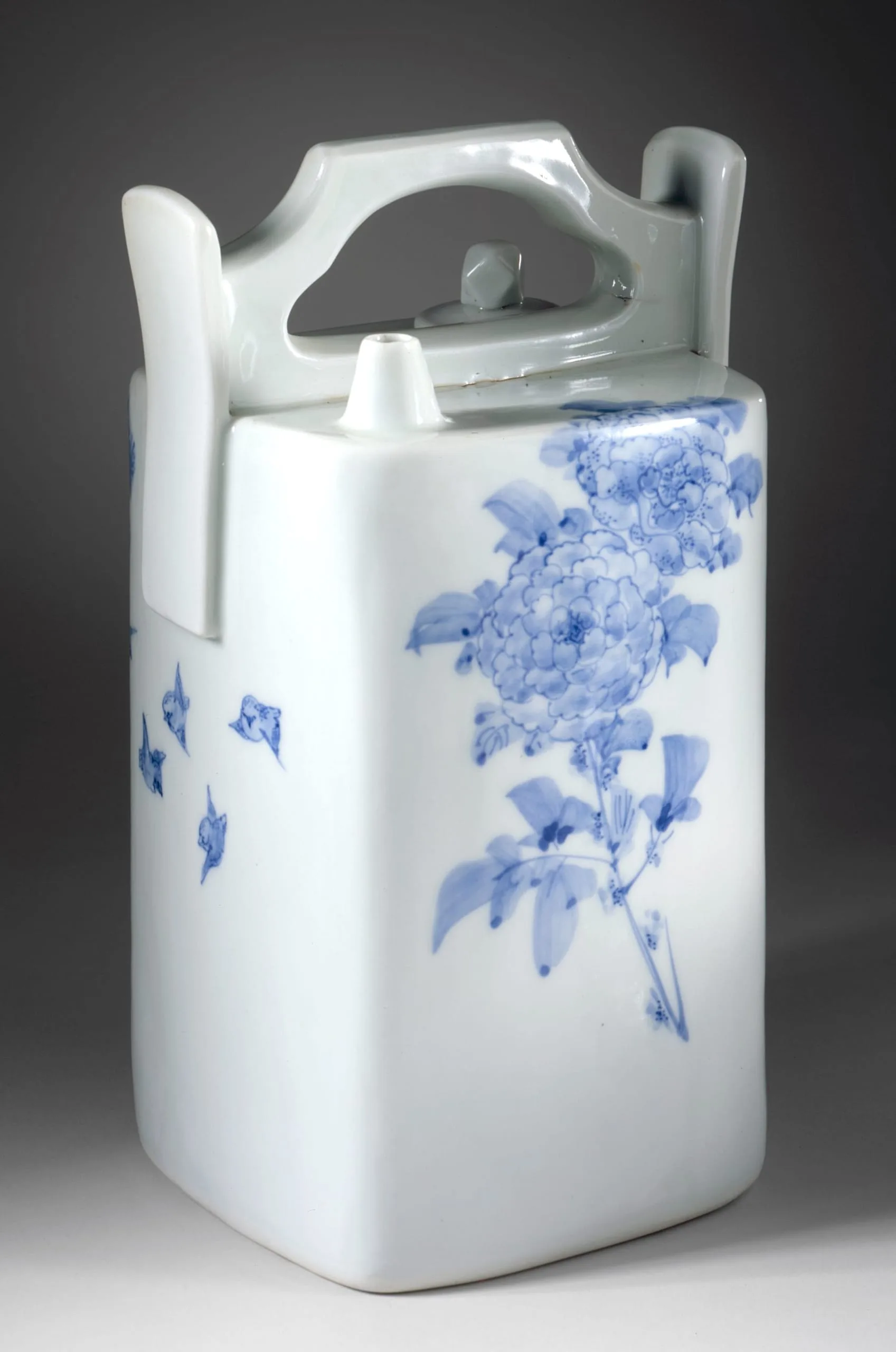 - Square Sake Vessel with Pine and Hawk, Peony and Sparrow Decor