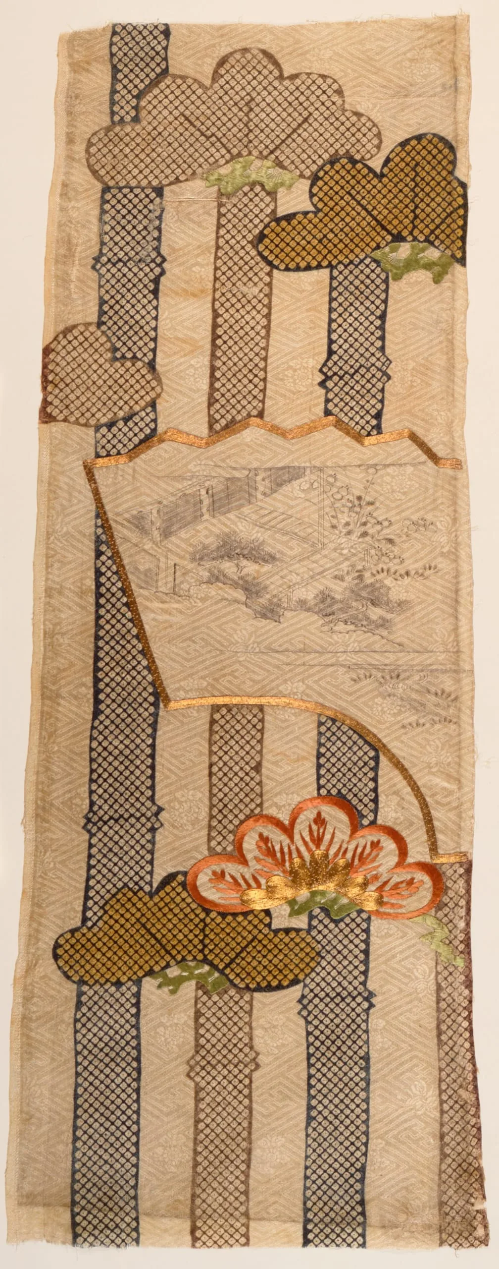 - Kosode (Kimono) Fragment with Bamboo, Pine, and Fan with Painted Scene