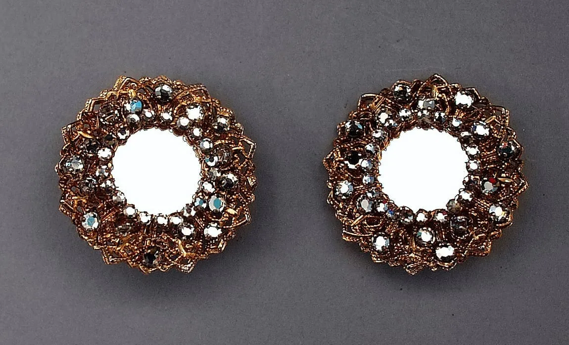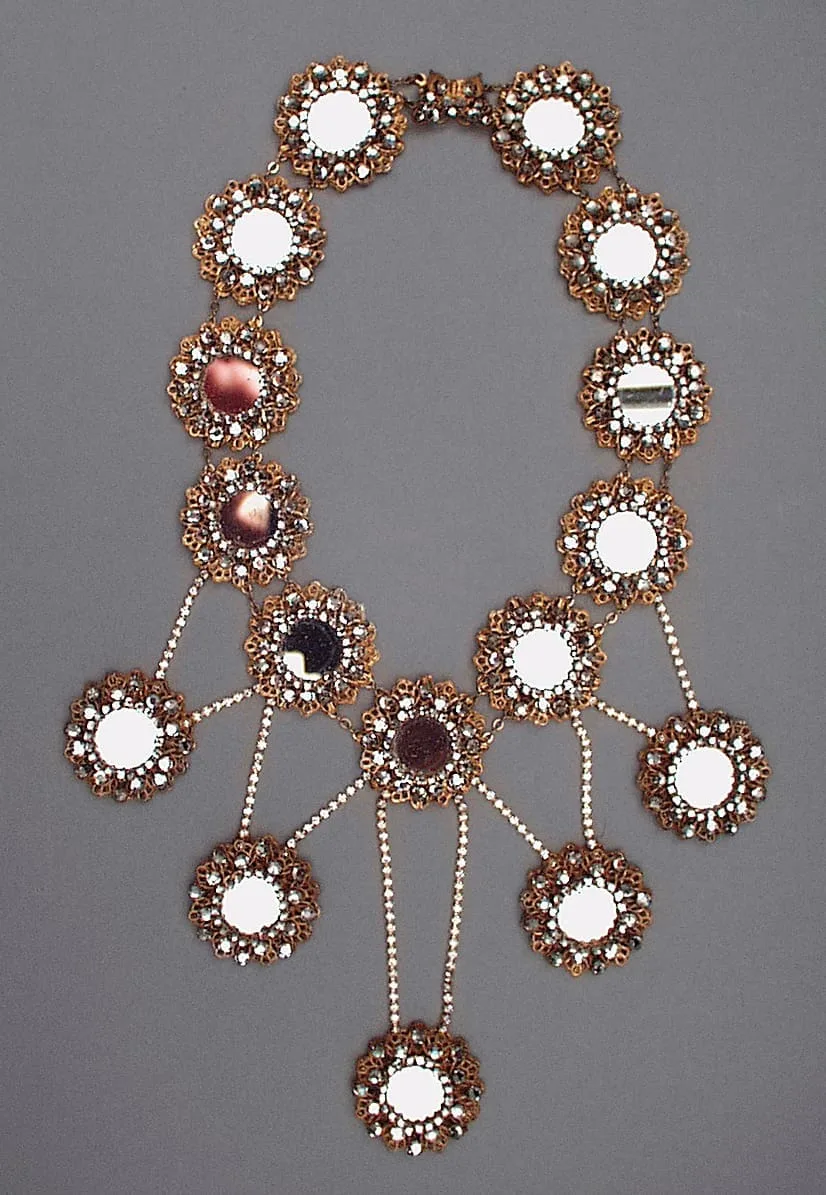 - Glass mirrors, crystal montees, 18 kt gold-electroplated brass