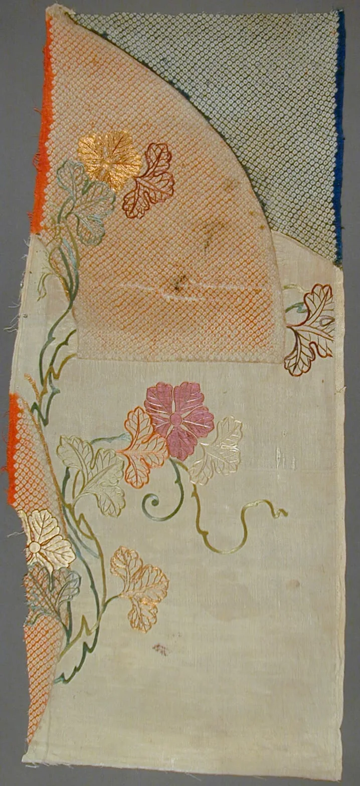 - Kosode (Kimono) Fragment with Paper Fans and Chyrsanthemums
