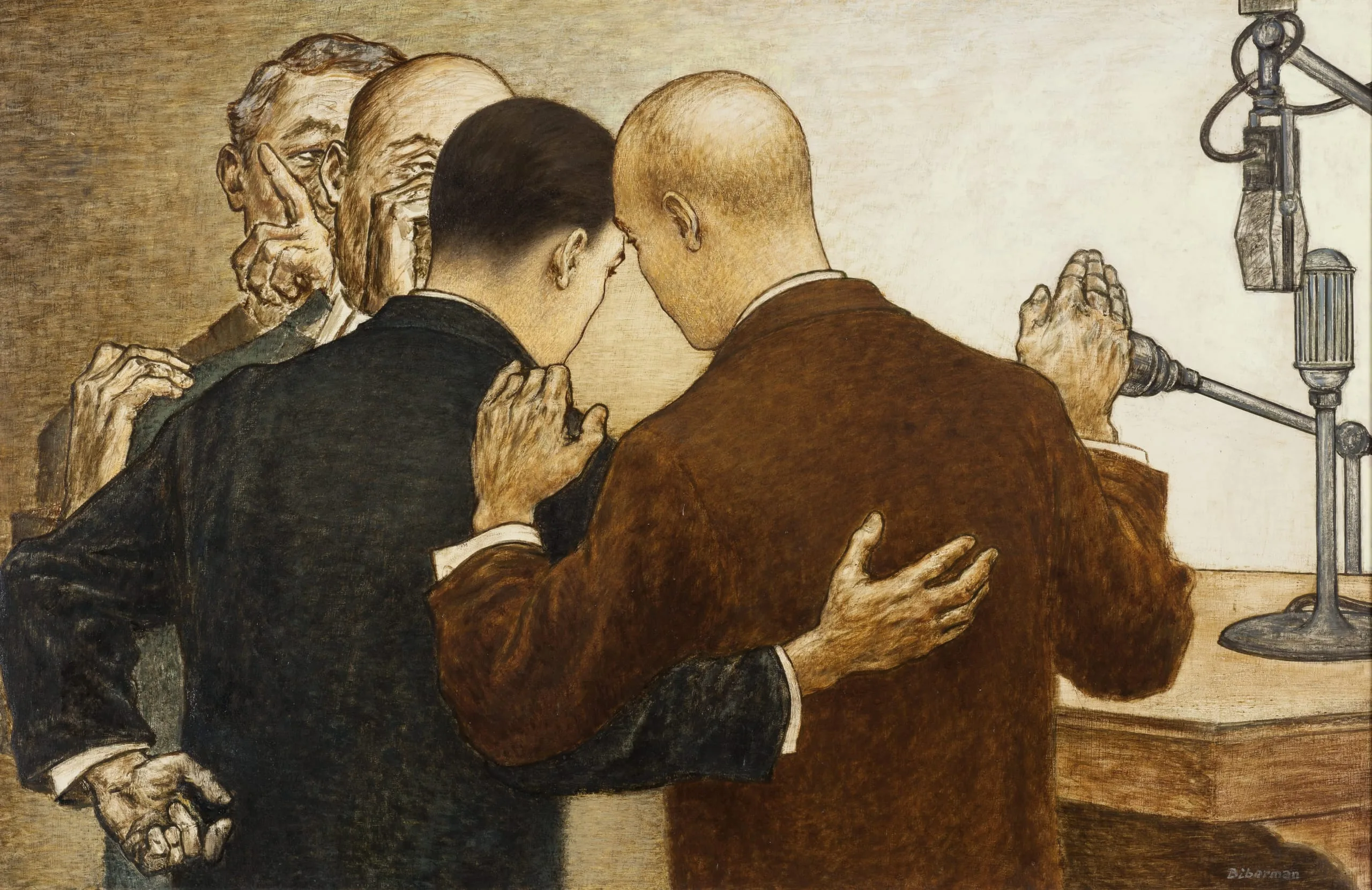 Conspiracy, a major figure painting by Edward Biberman, recently has been added to LACMA’s permanent collection. Biberman is among the best of the California painters who worked in a modernist idiom starting in the 1930s. In addition to his signature urban landscapes and striking portraits, he also created powerful images relating to contemporary social and political events.