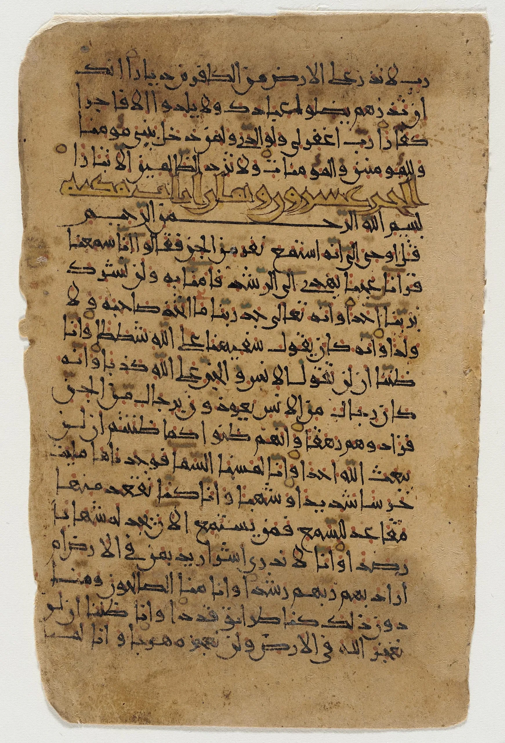 - Page from a Manuscript of the Qur'an (71:26-28, 72:1-13; 72:13-28, 73:heading and bismillah)
