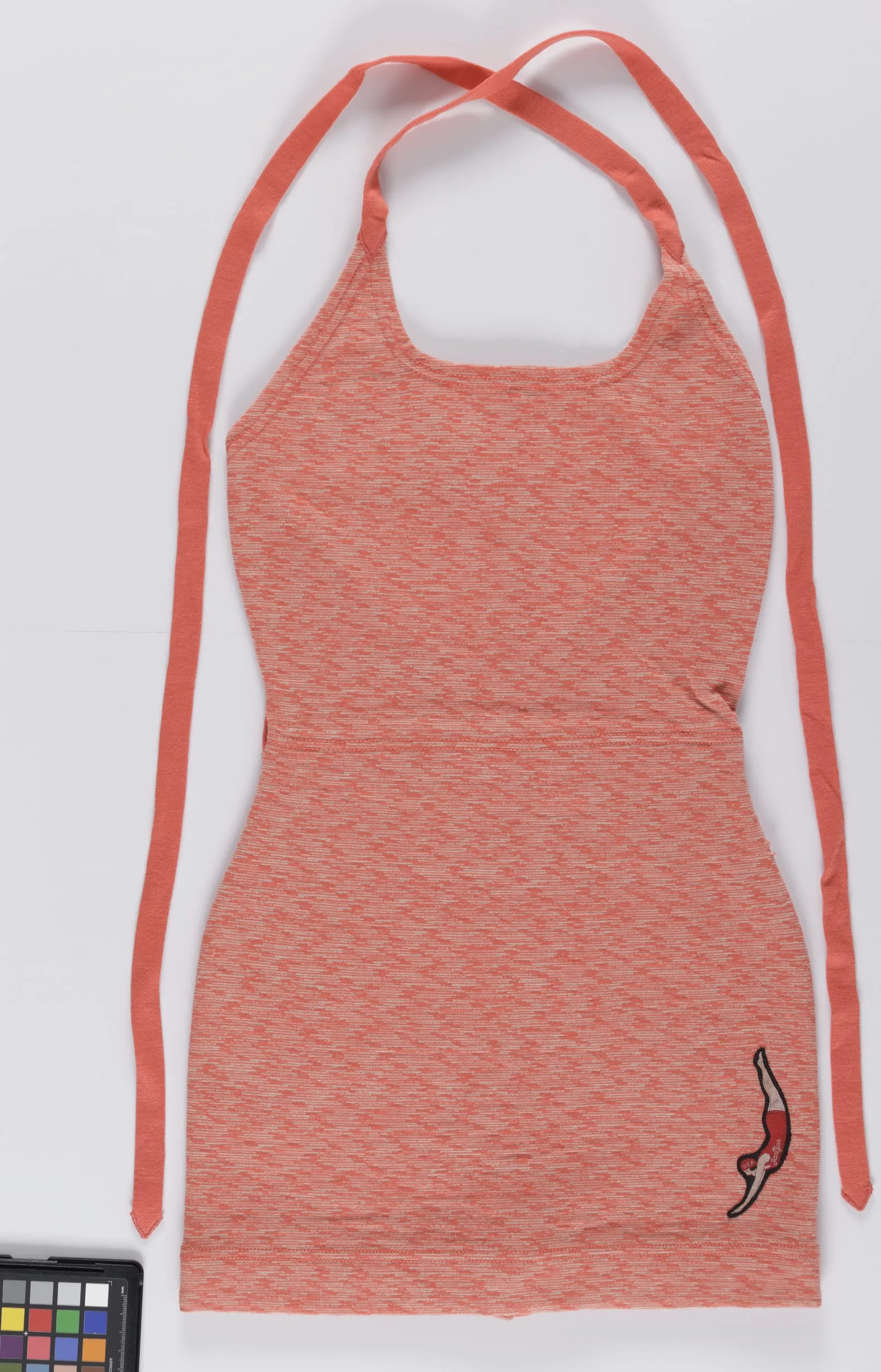 - Wool knit with rayon embroidered appliqué, wool knit tapes, and plastic