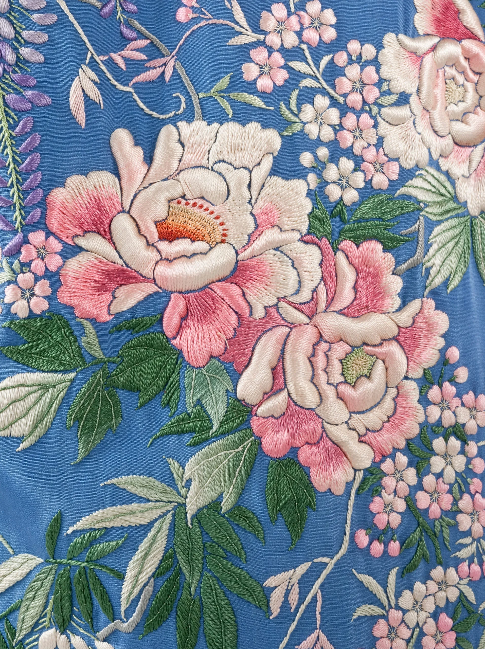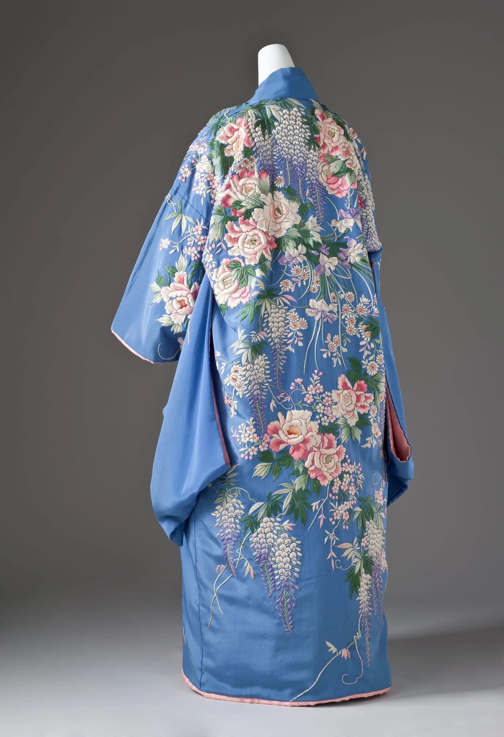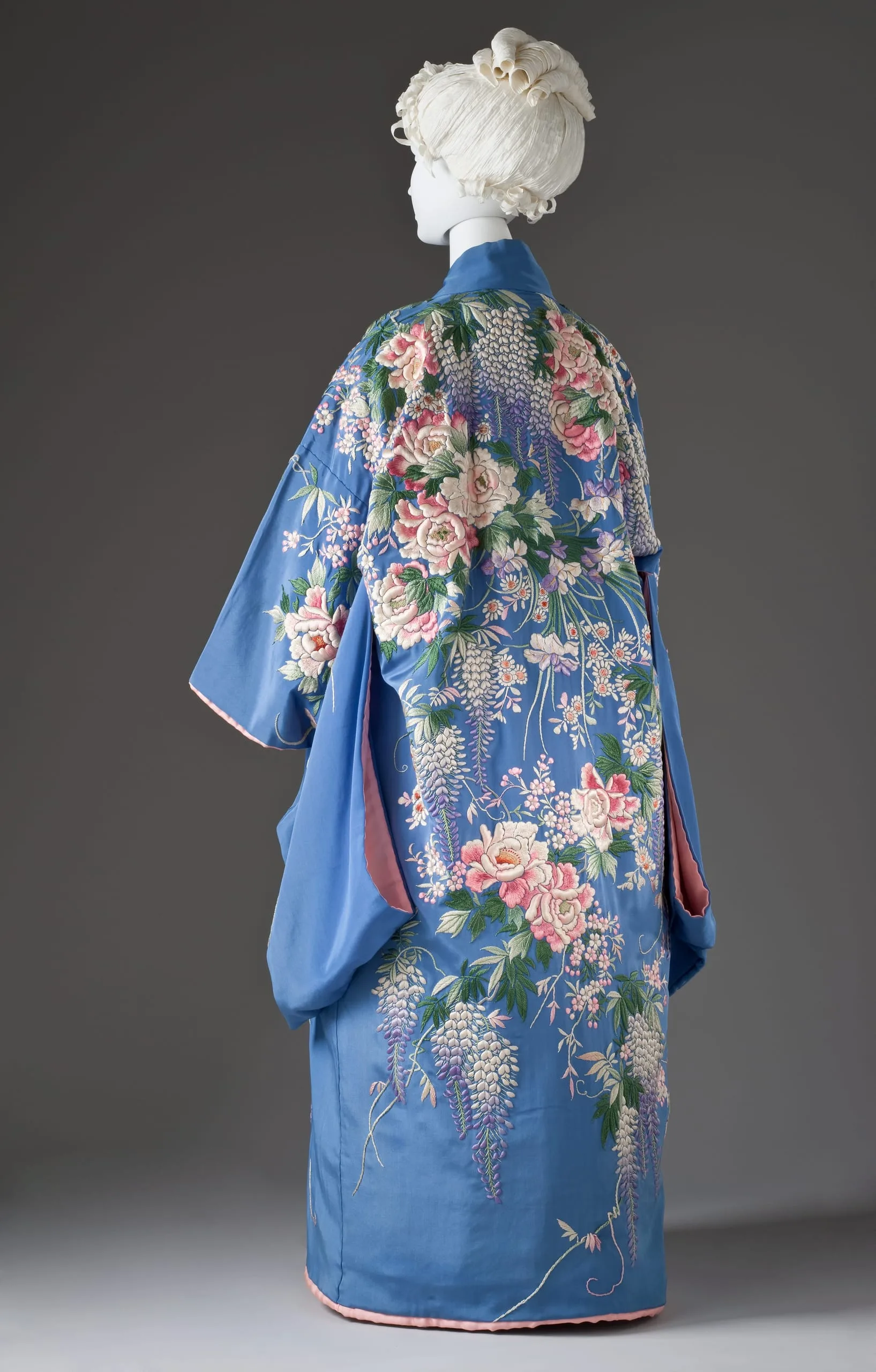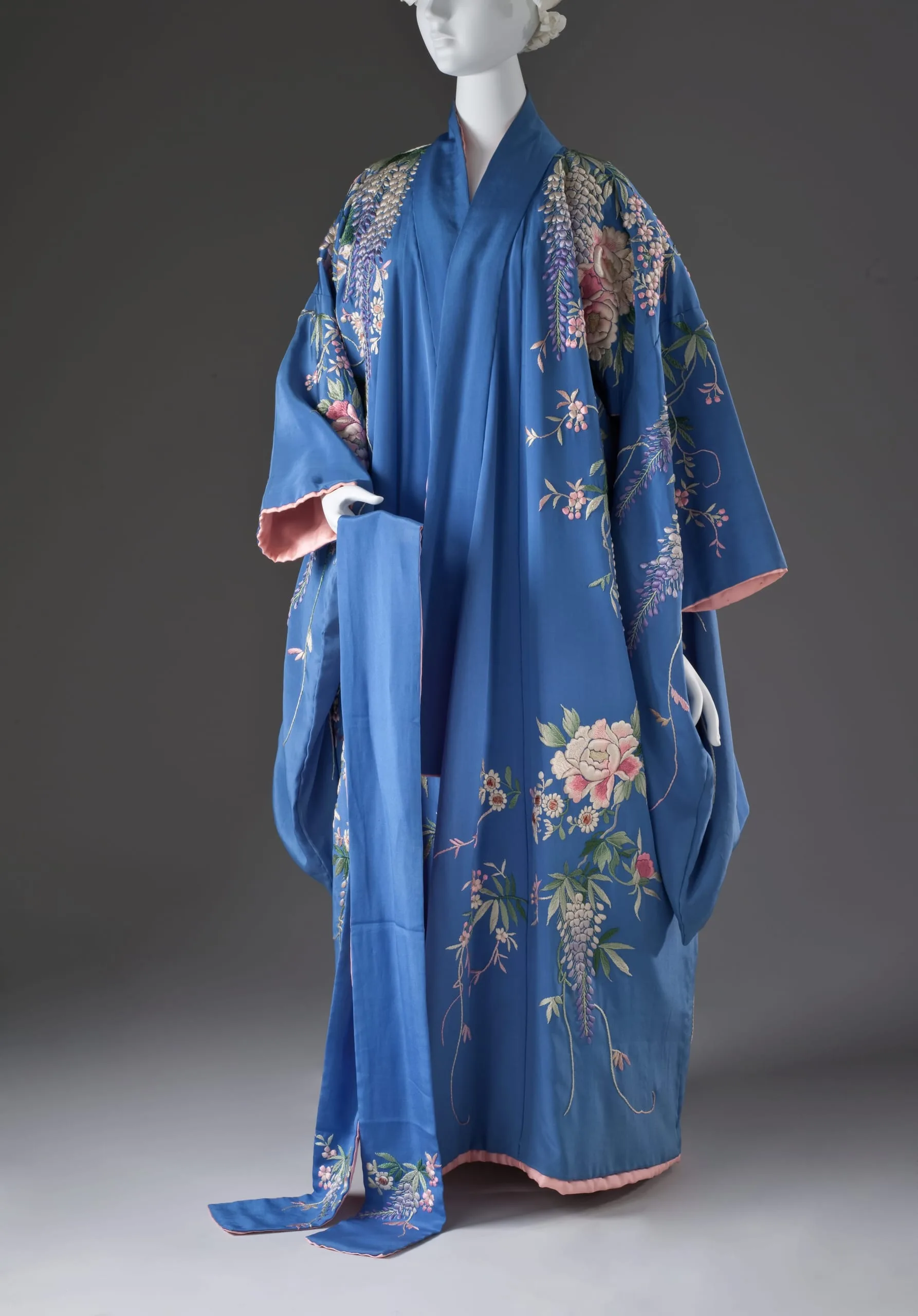 - Dressing Gown and Sash: Silk plain weave with silk embroidery