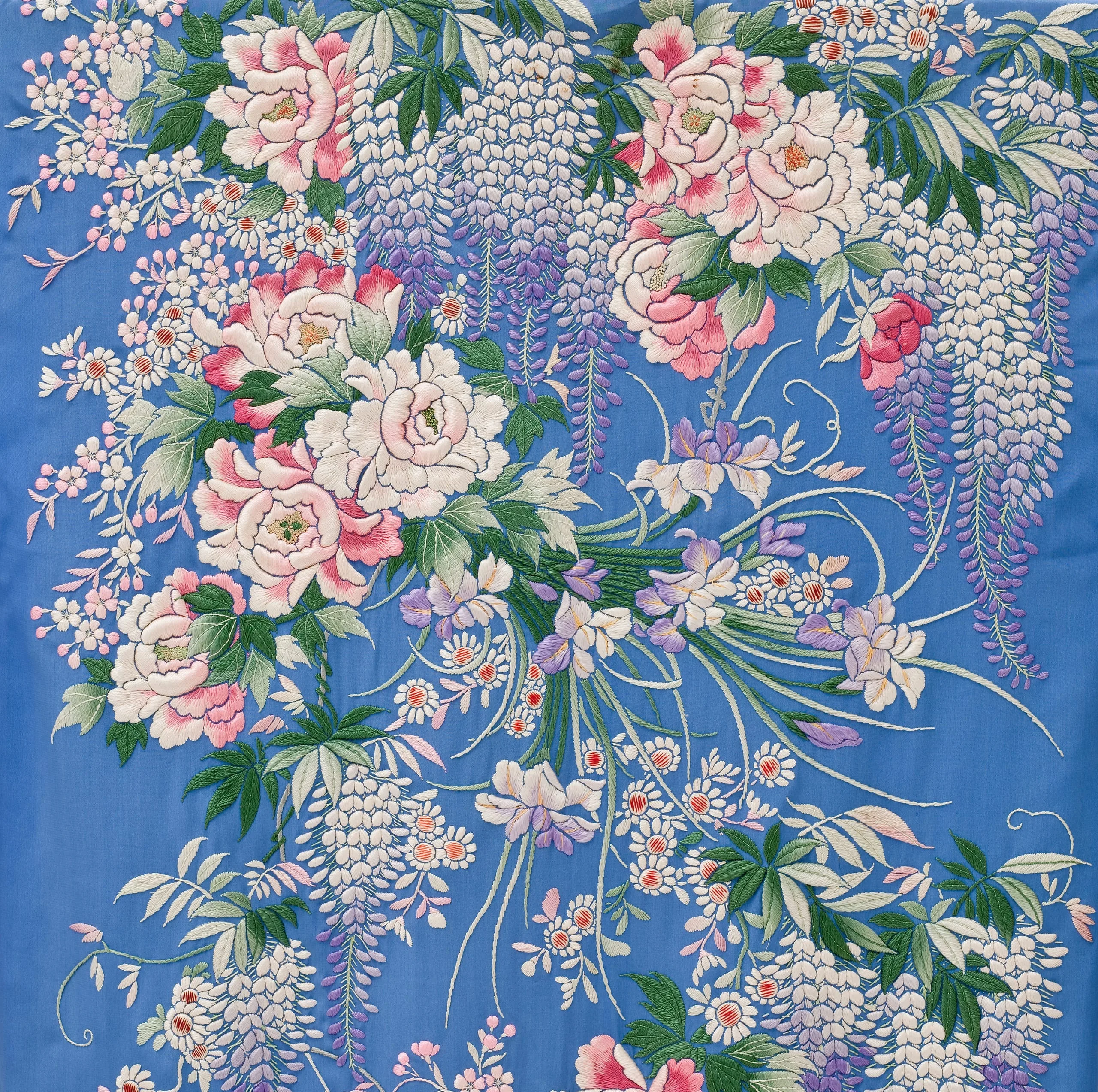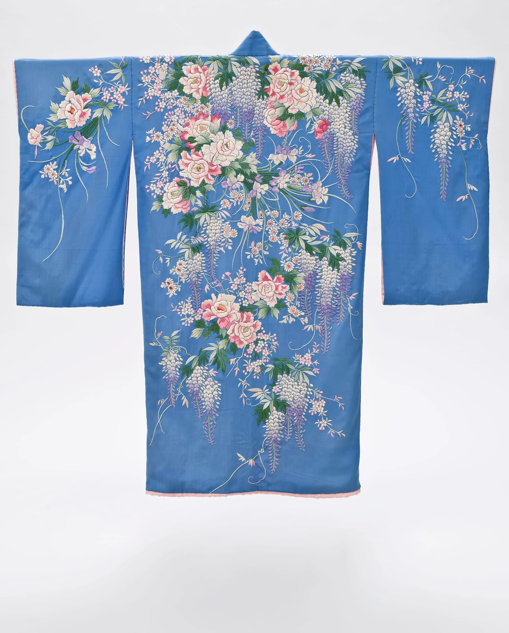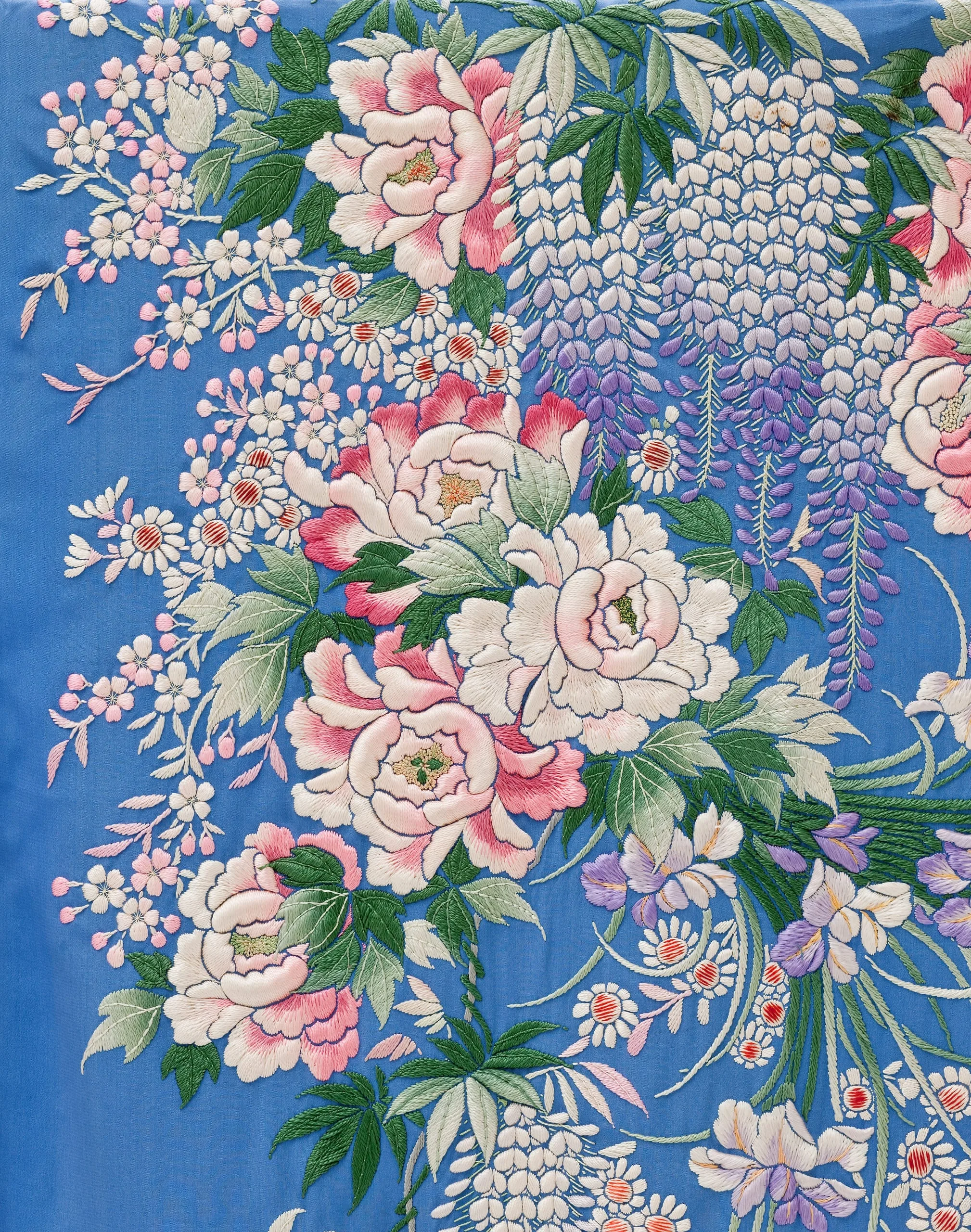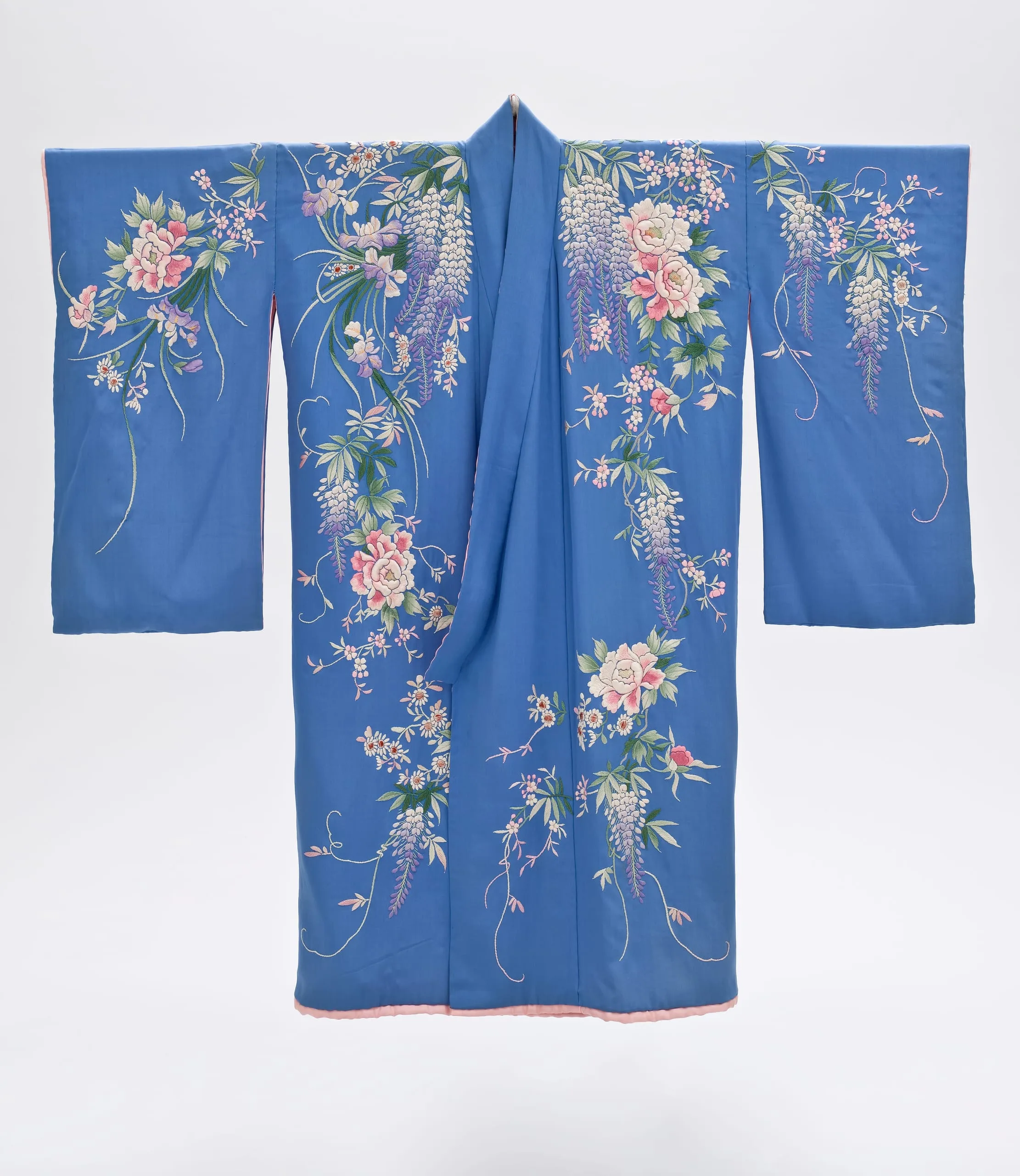- Dressing Gown and Sash: Silk plain weave with silk embroidery