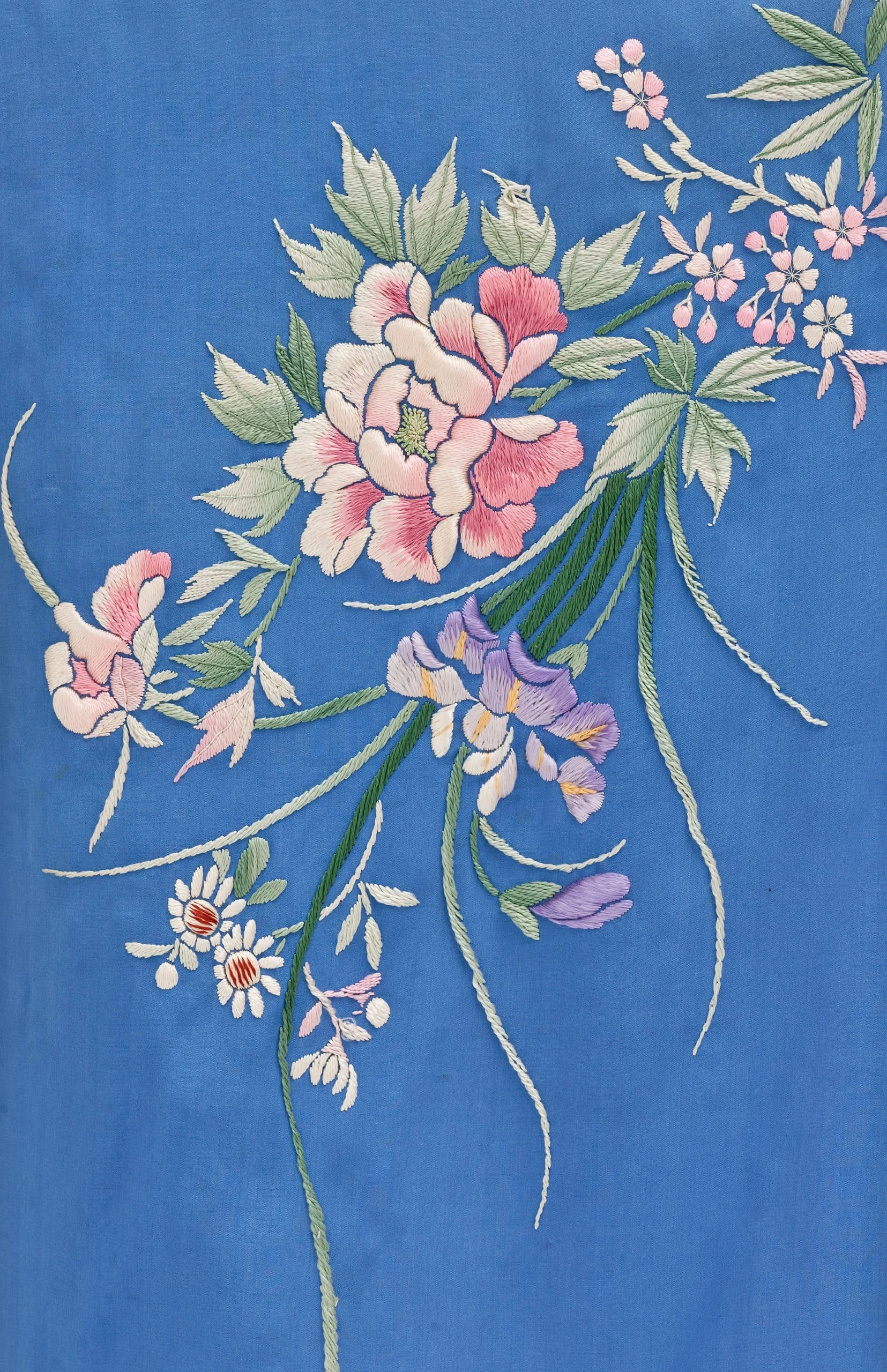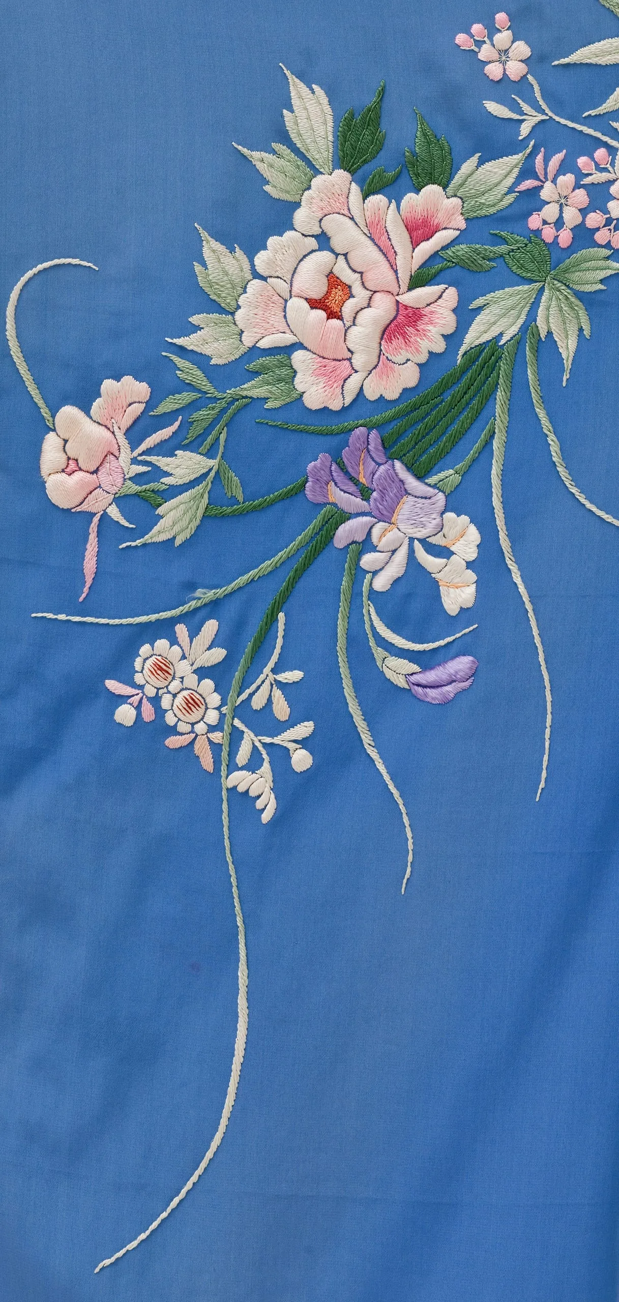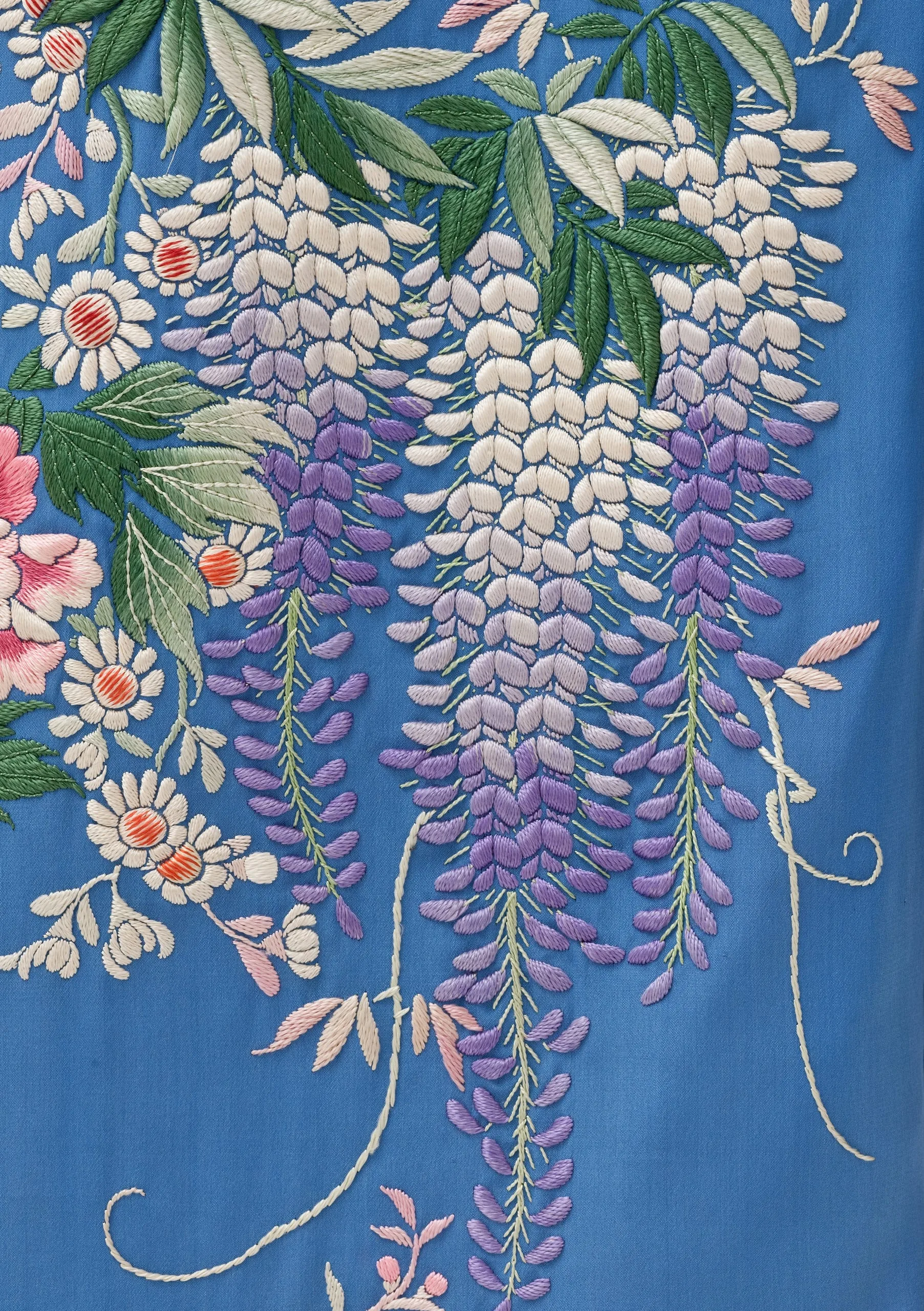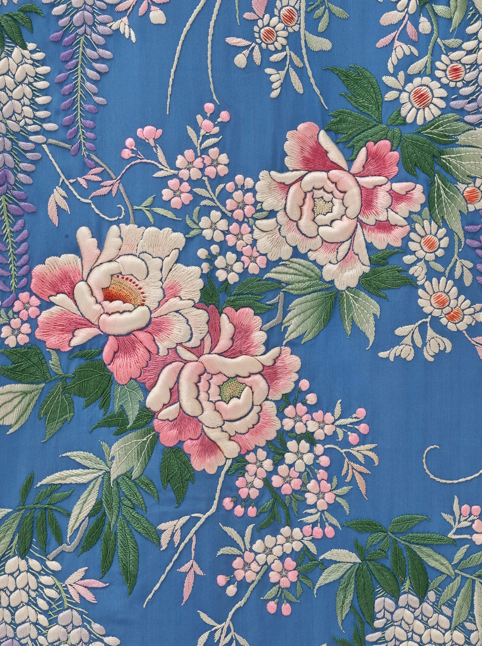 - Dressing Gown and Sash: Silk plain weave with silk embroidery