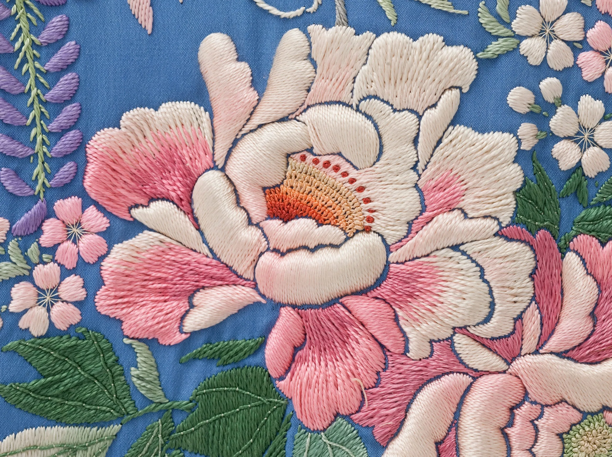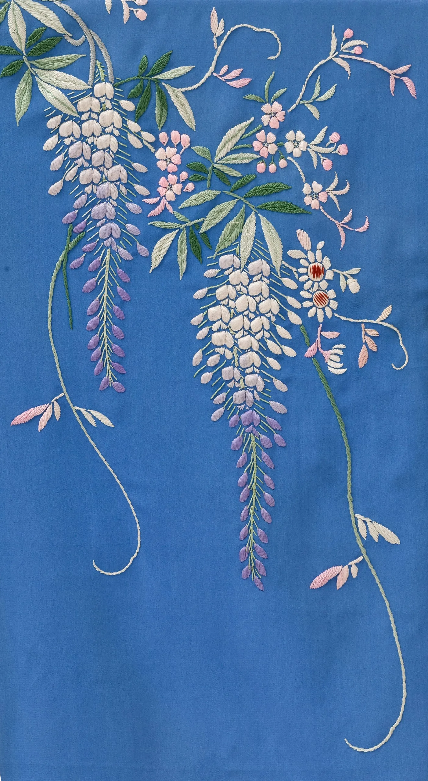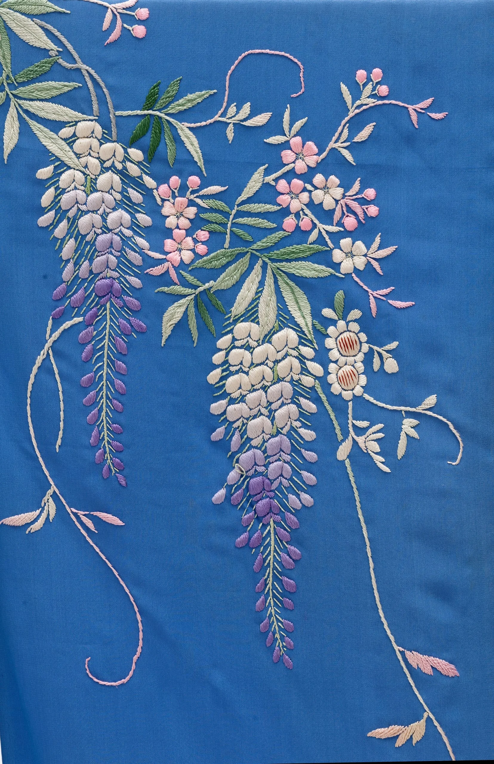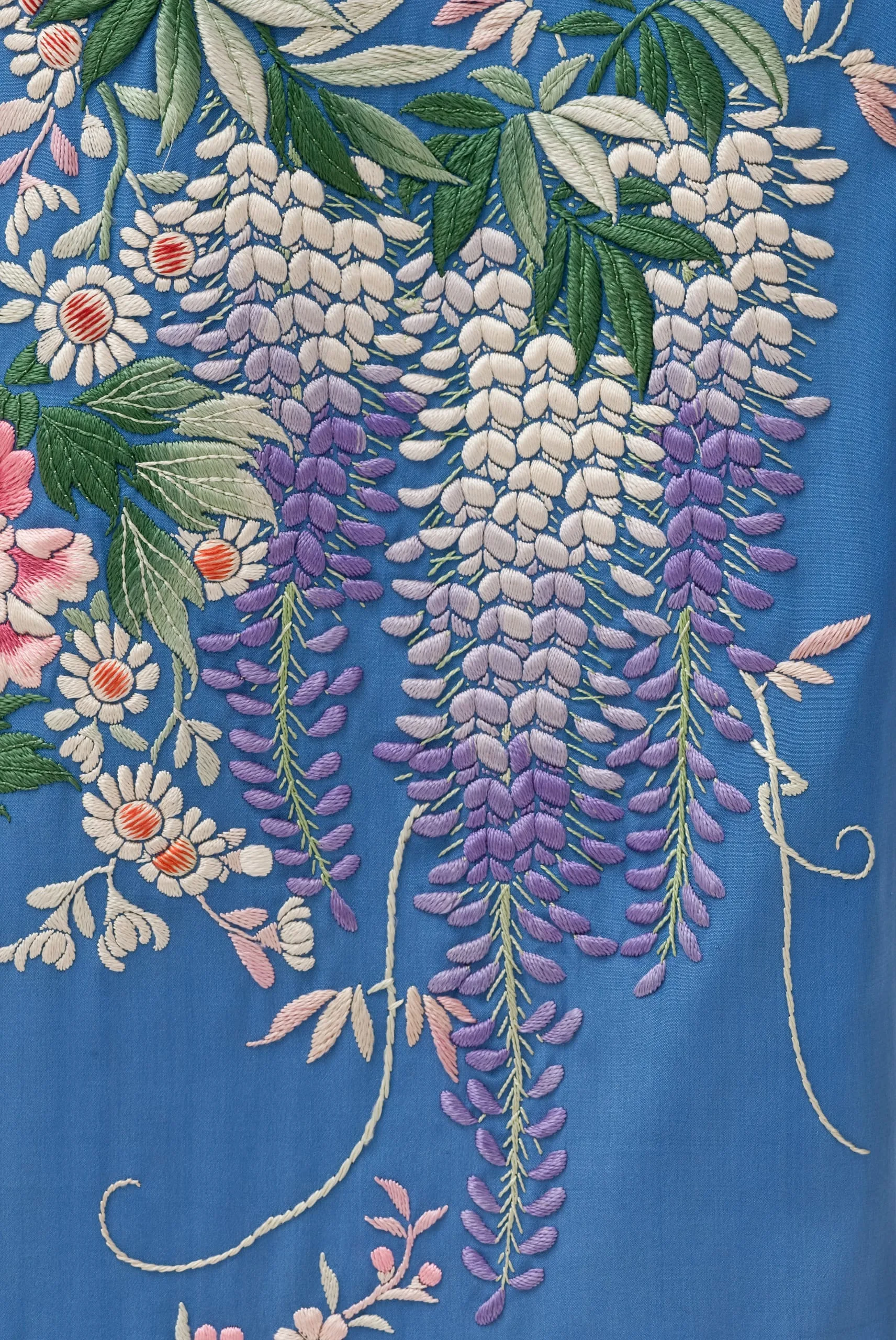 - Dressing Gown and Sash: Silk plain weave with silk embroidery