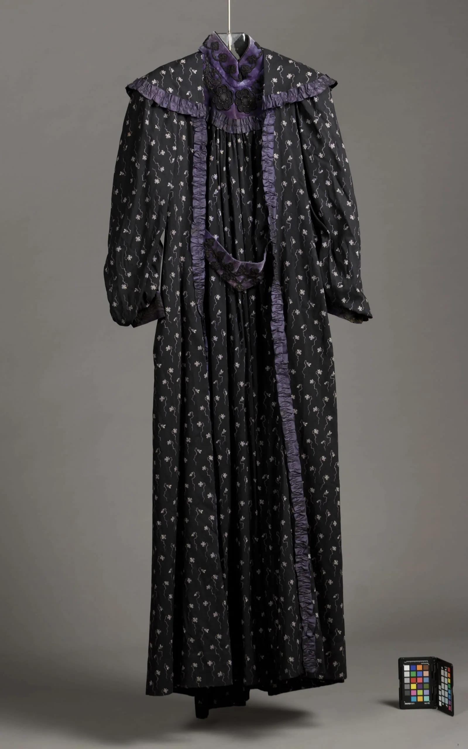- Cotton/wool plain weave, printed, silk plain weave, and cotton velveteen, with silk passementerie