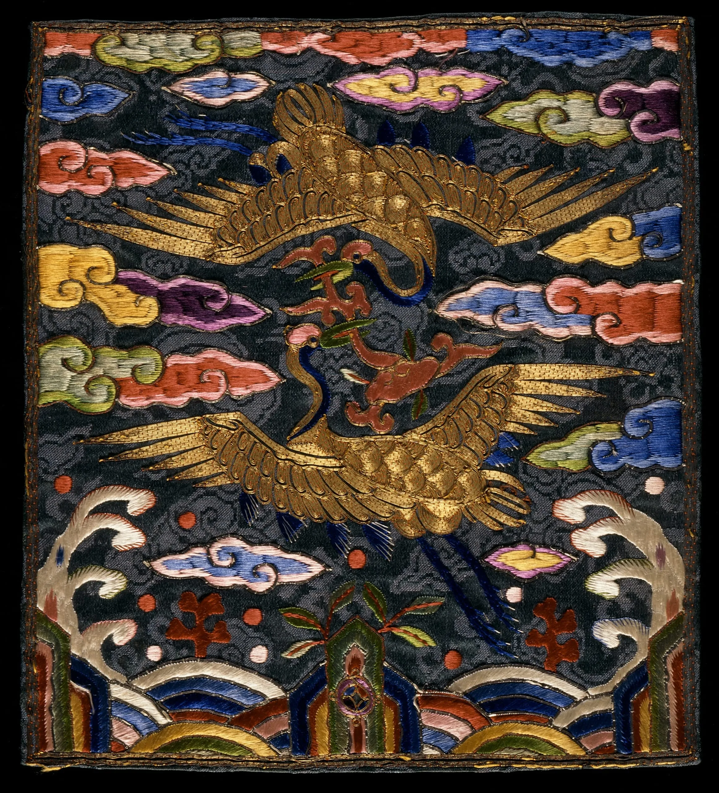 - Rank Badge (Hyungbae) of Civil Official with Two Cranes amidst Clouds