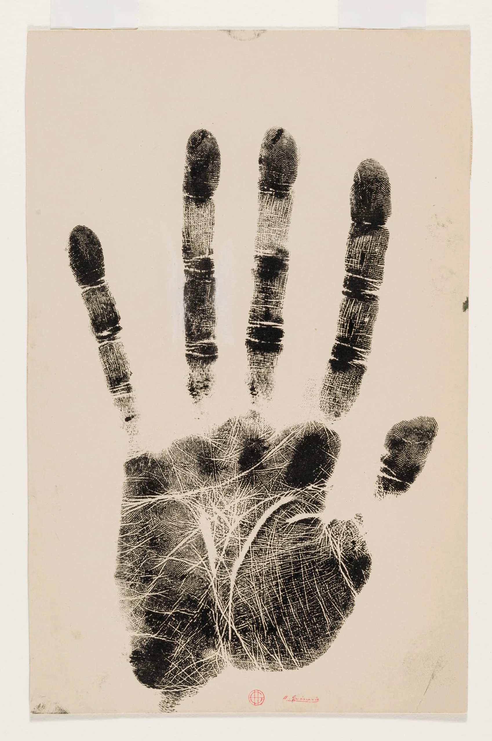 - Hand print, black ink on cream paper