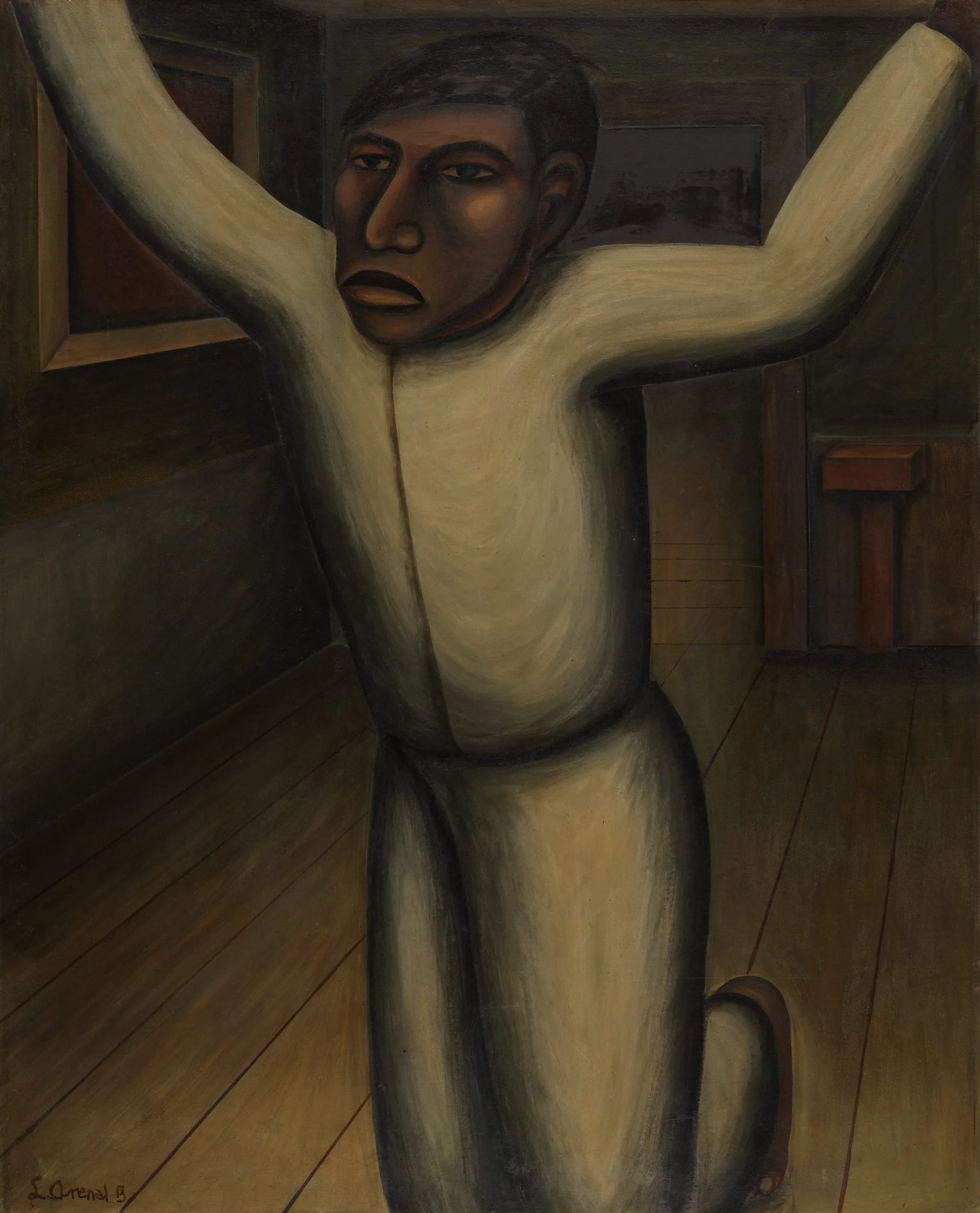 The Fanatic (El fanático) shows a bound figure compressed in an architectural space–an allusion to the physical and psychological entrapment of workers. Closely associated with David Alfaro Siqueiros (1896–1974), Luis Arenal Bastar was a political activist who collaborated with Siqueiros on several mural projects in the United States and Mexico, and also experimented with new techniques. In 1937, Arenal was a founding member of the Taller de Gráfica Popular (TGP), a collective center for the creation of sociopolitical art. Ilona Katzew, 2008