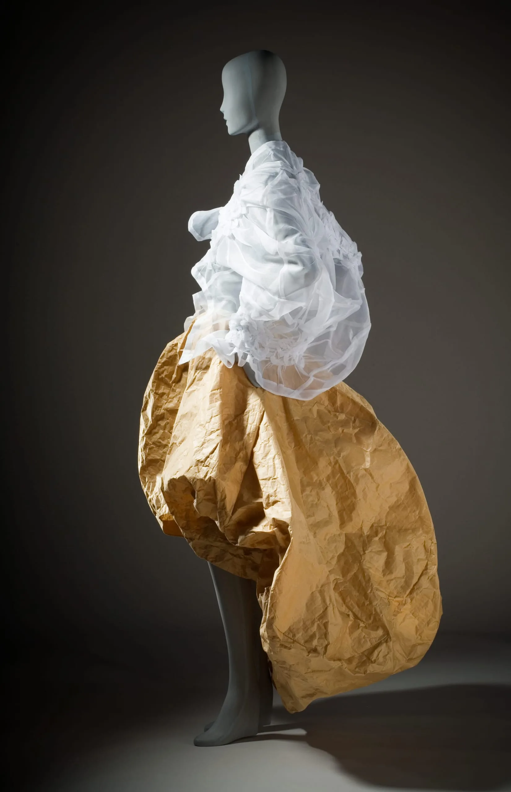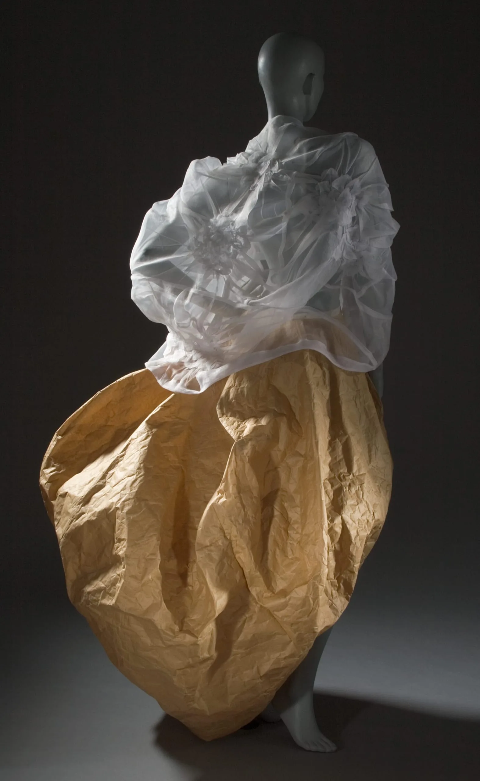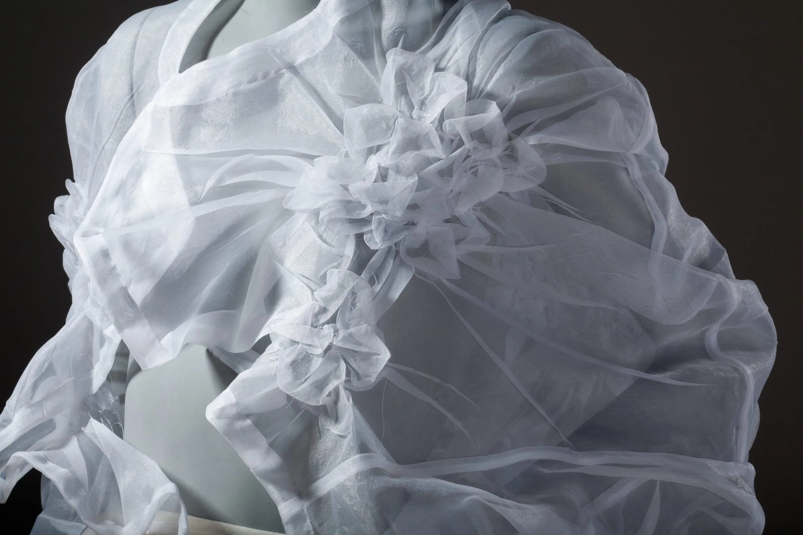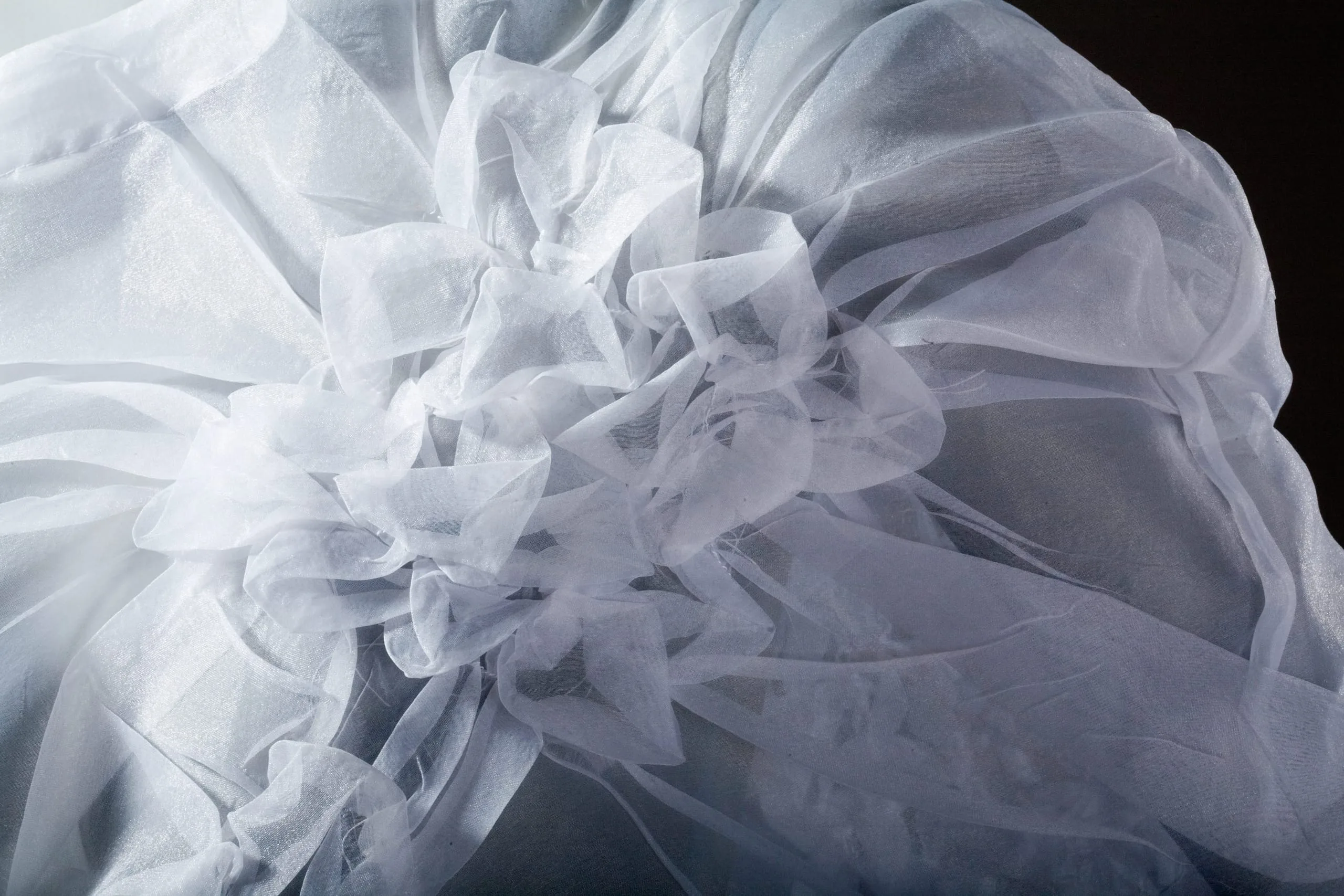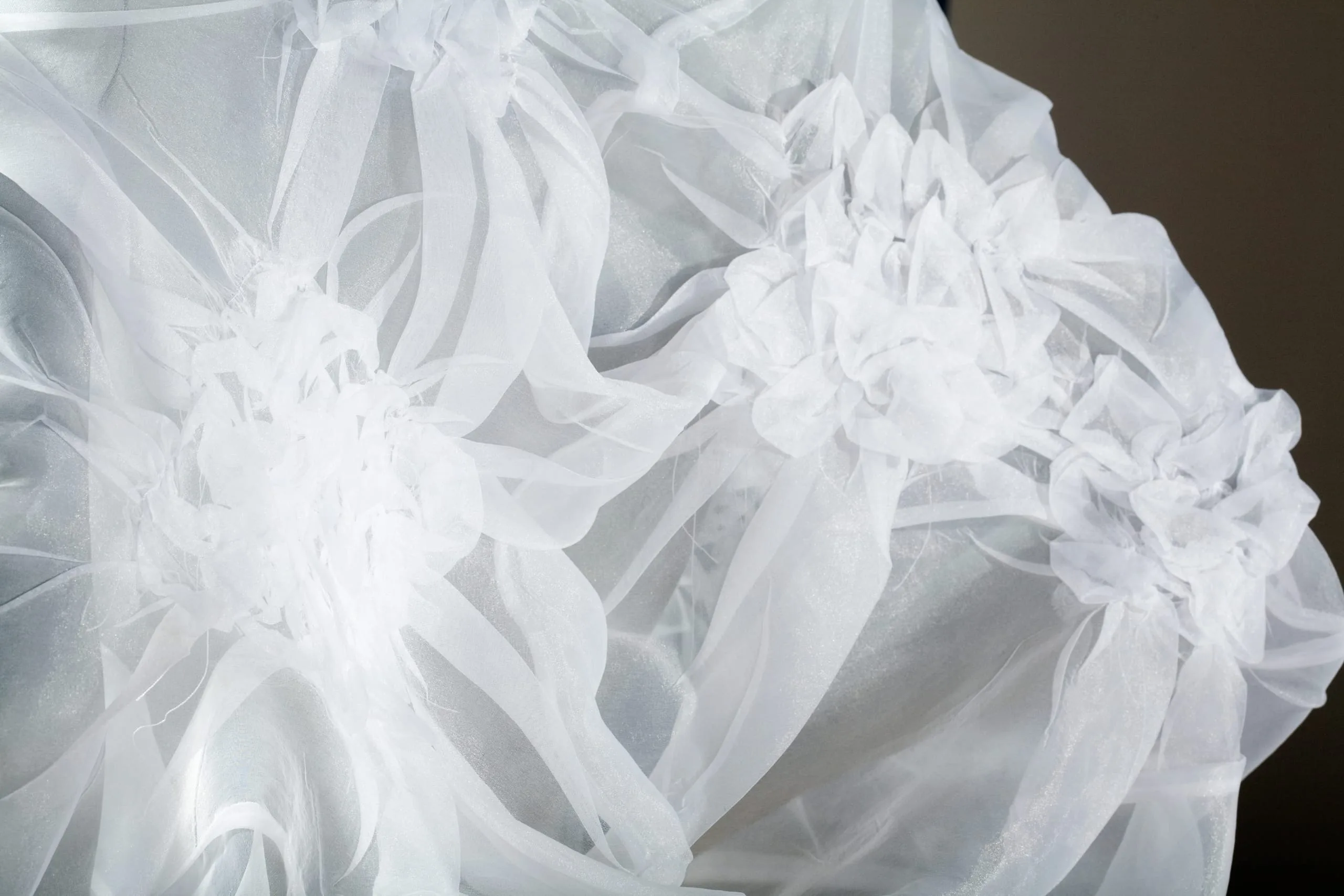 - Polyester plain weave (organdy); gathered, stitched, and heat- and pressure-set