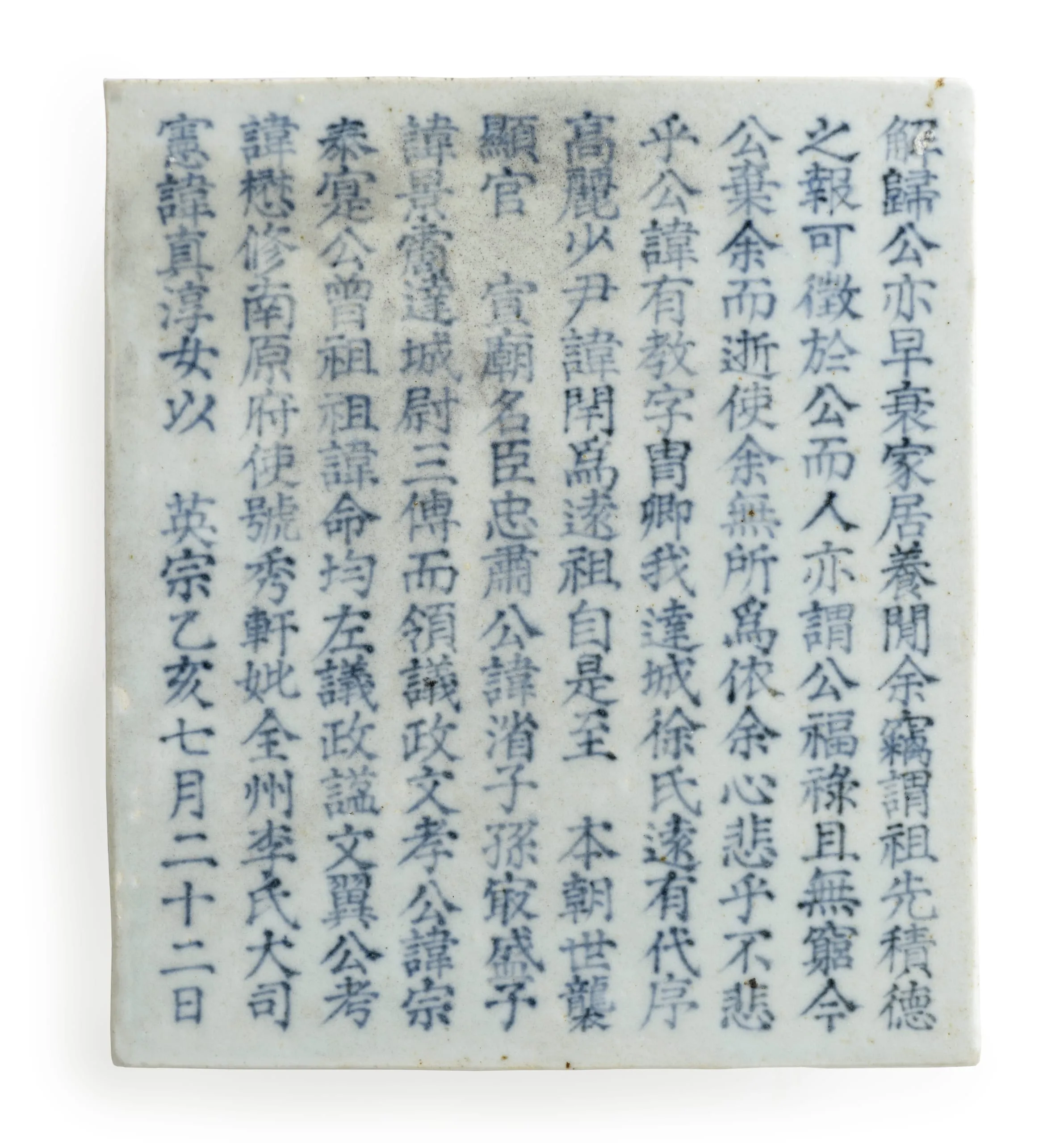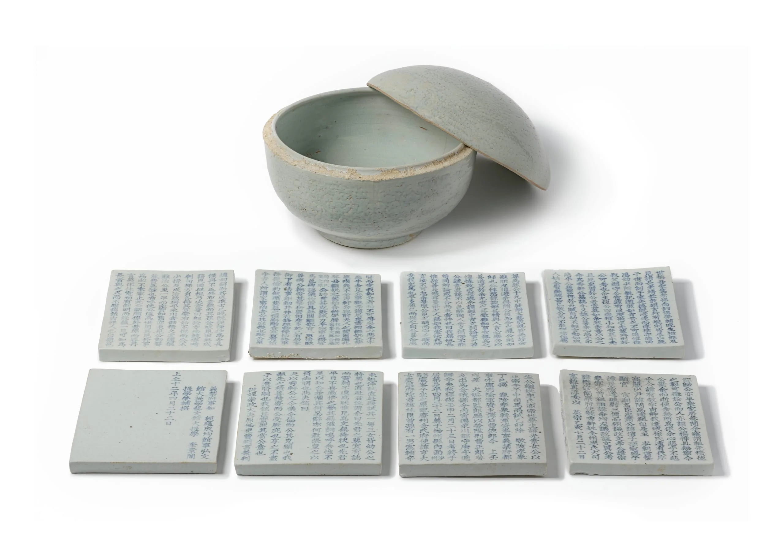 - Burial Panels and Covered Bowl Set with Inscriptions in Underglaze Cobalt - blue