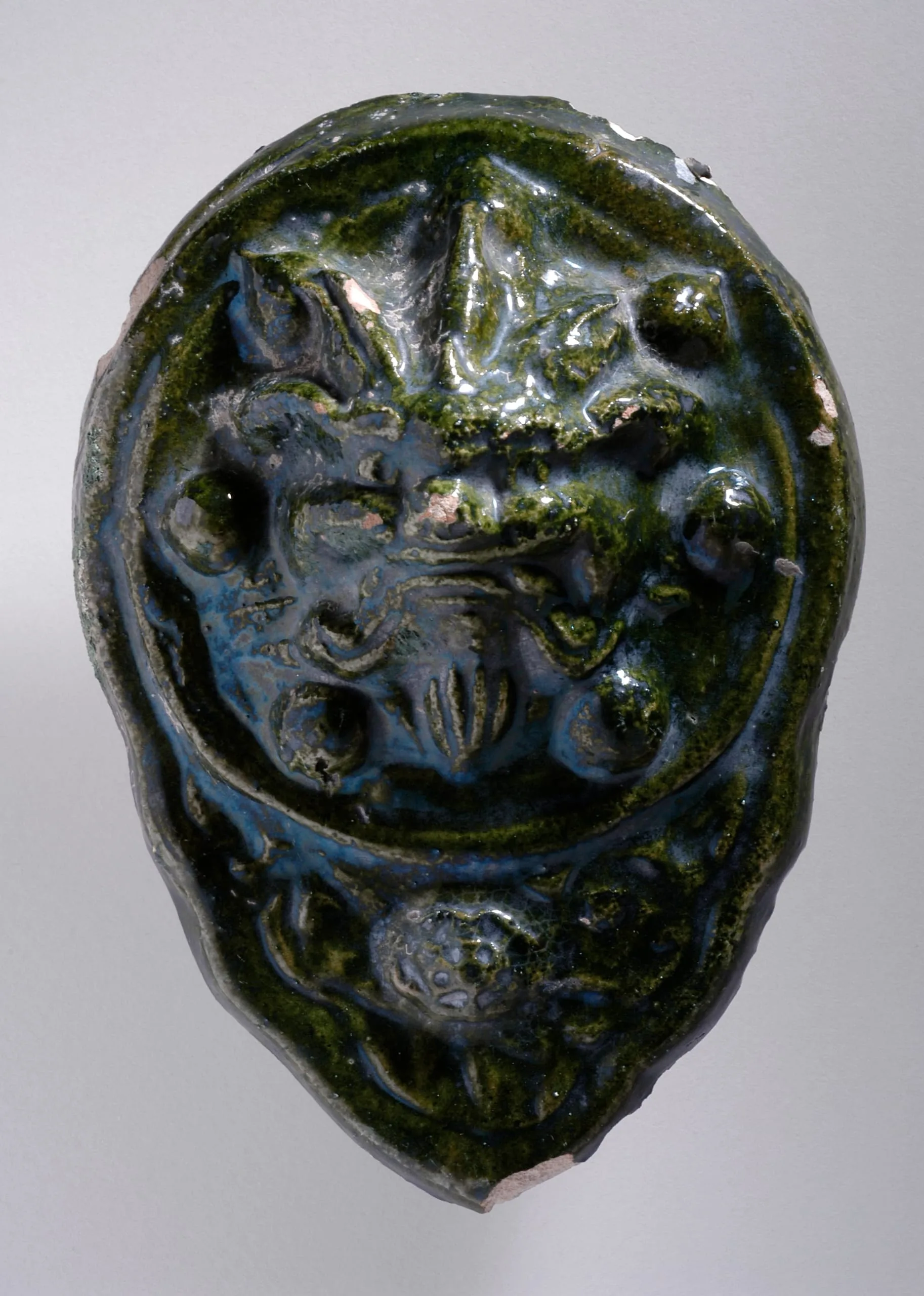 - Molded stoneware with dark green glaze