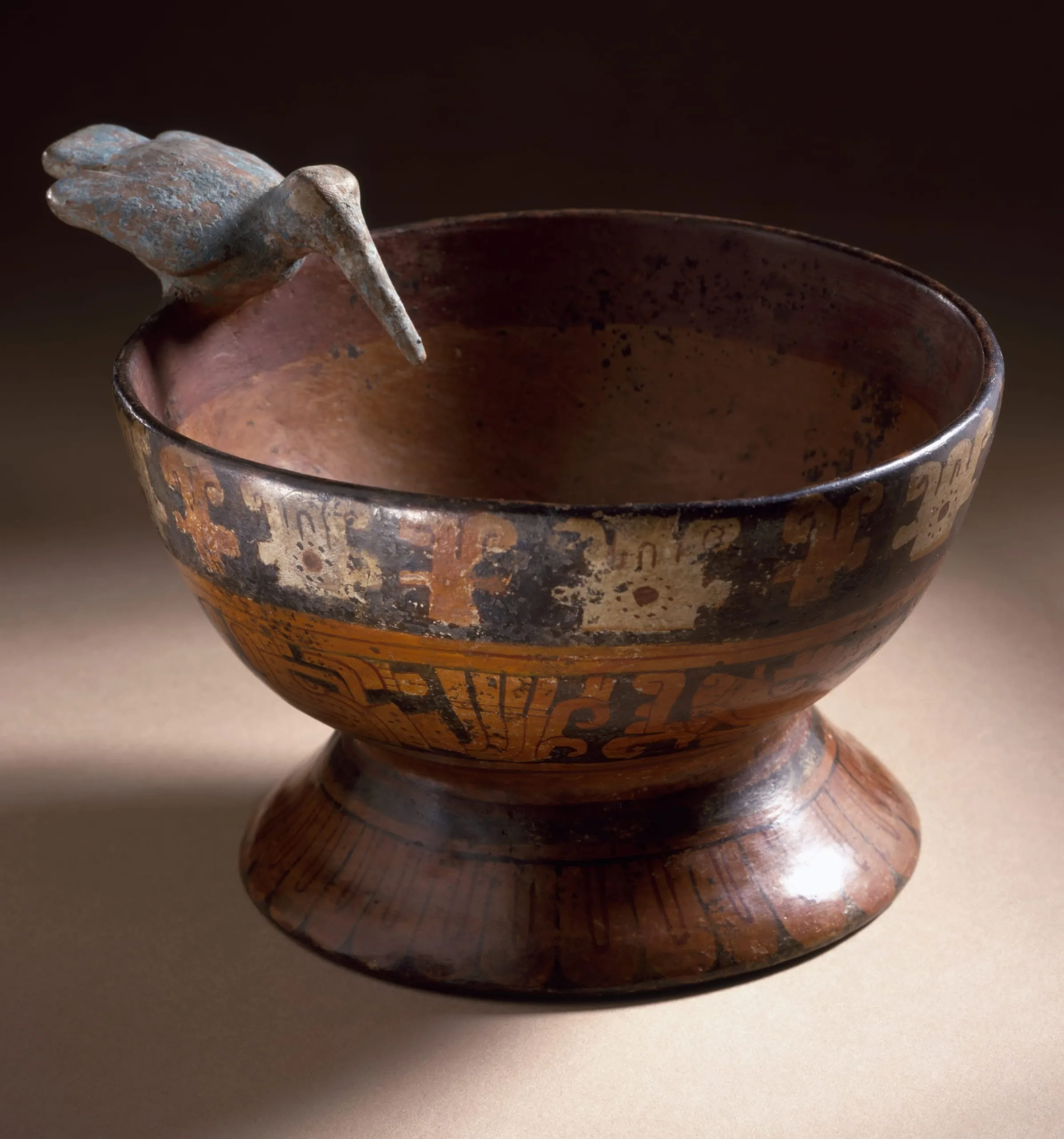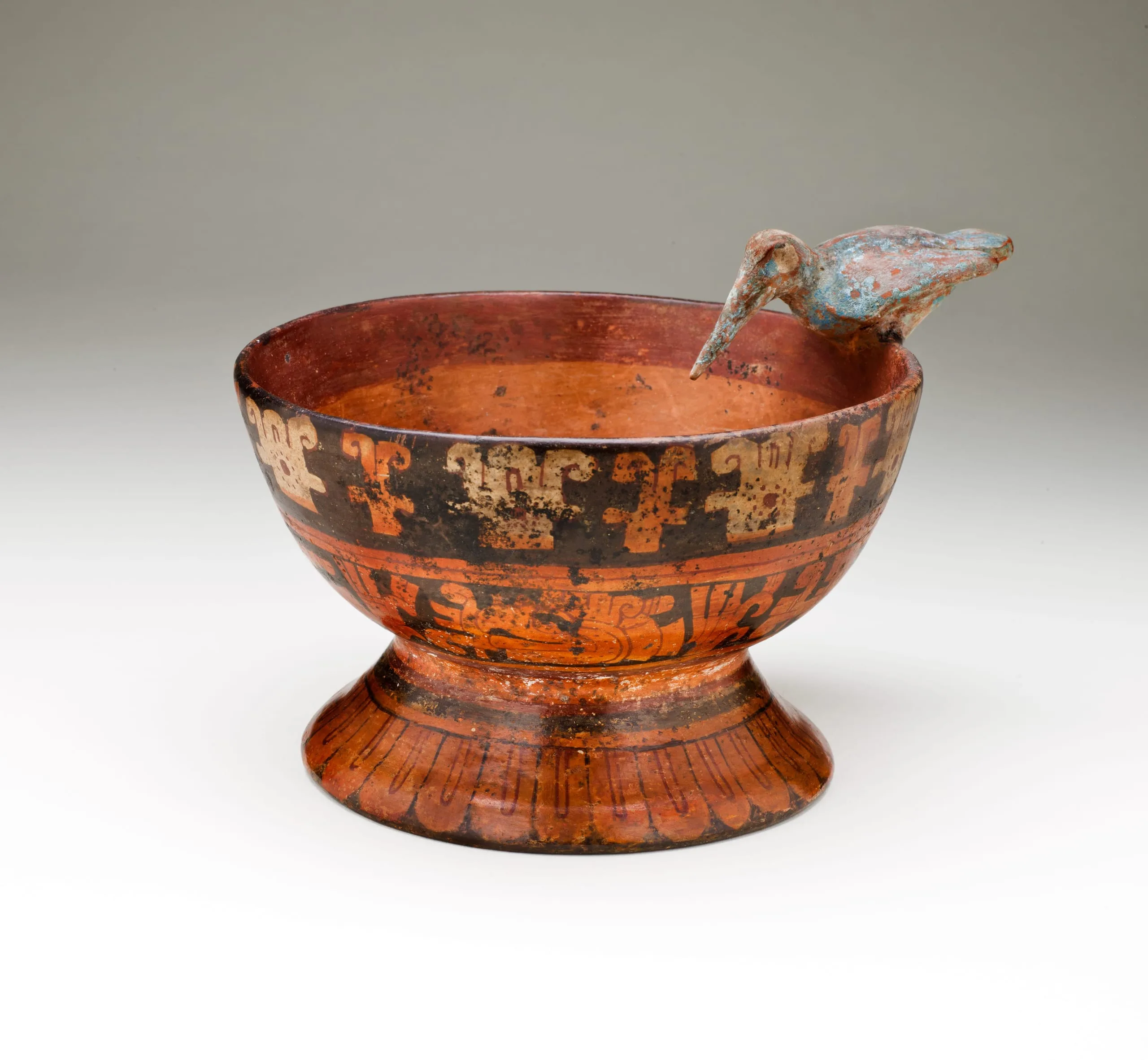 - Slip-painted ceramic with postfire application of Maya blue pigment