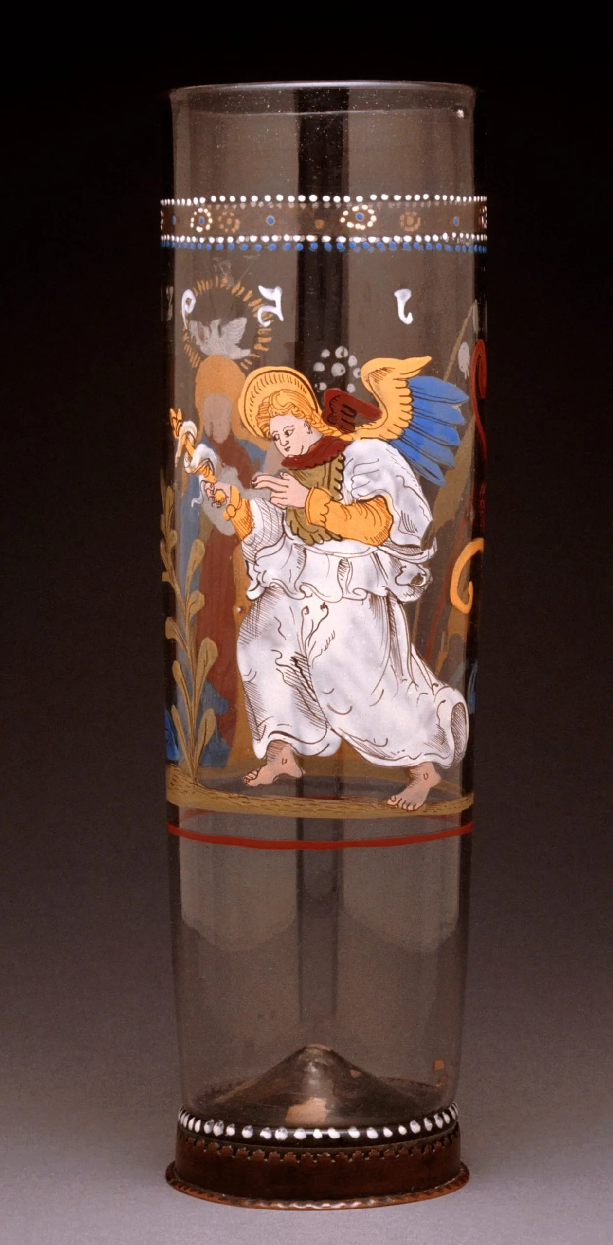 - Height: 10 3/4 in. (27.31 cm); Diameter of rim: 3 3/8 in. (8.57 cm); Diameter of base: 3 1/16 in (7.78 cm)