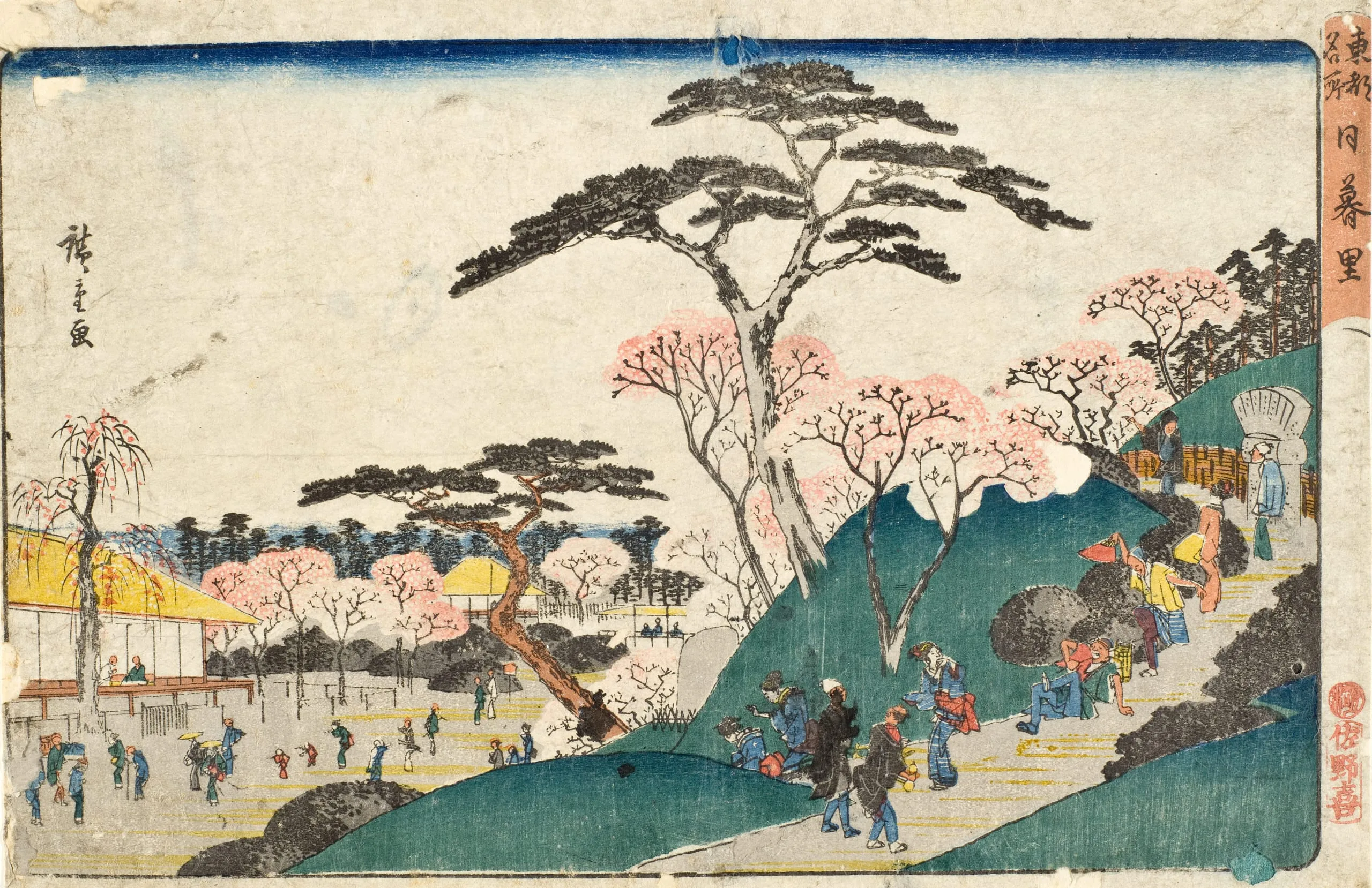 - Color woodblock print (late impression, laid down, ink-stained)