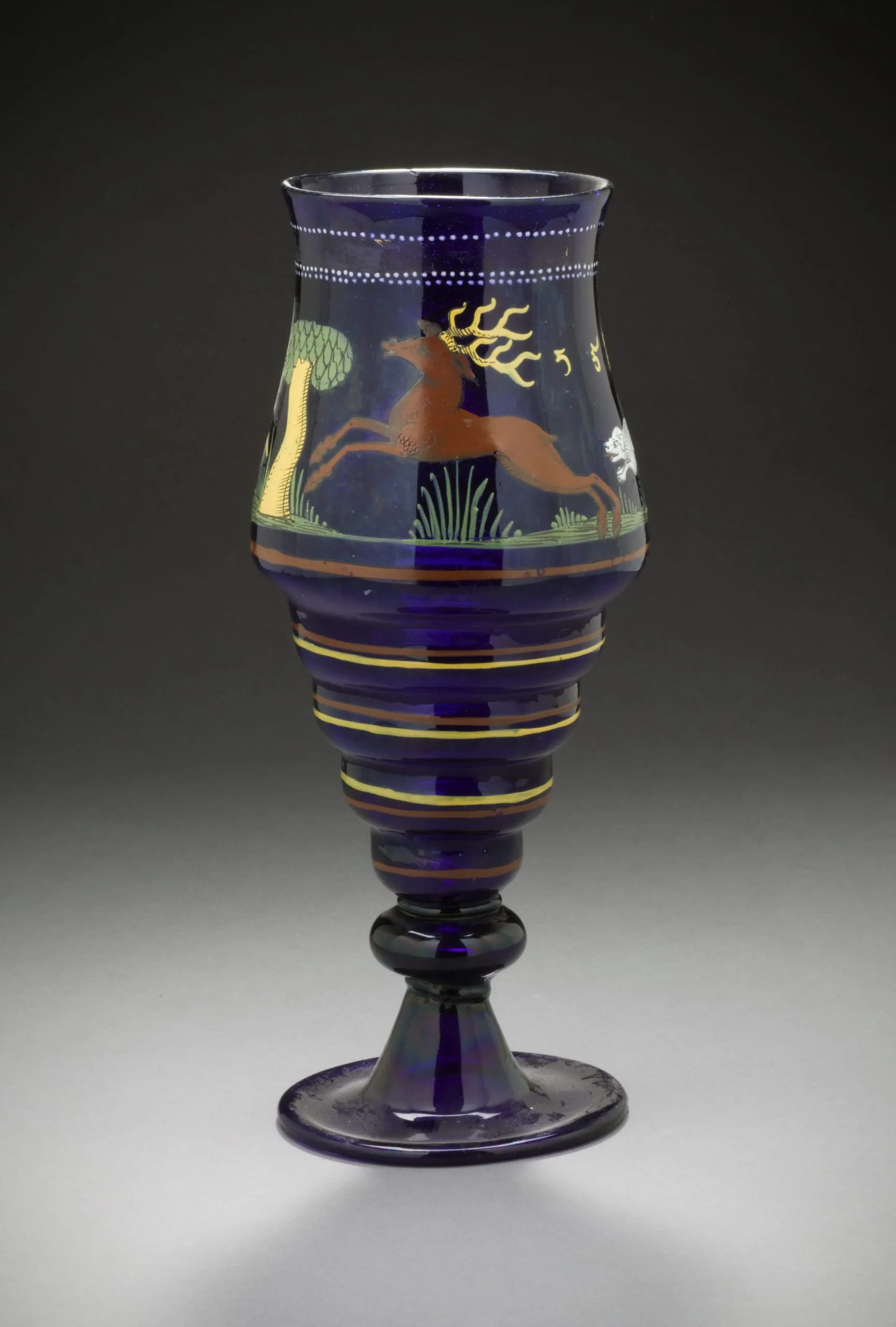 - Height: 10 1/4 in. (26.04 cm); Diameter of rim: 3 1/2 in. (8.89 cm); Diameter of base: 3 5/8 in. (9.21 cm); Diameter of body: 4 3/8 in. (11.11 cm)