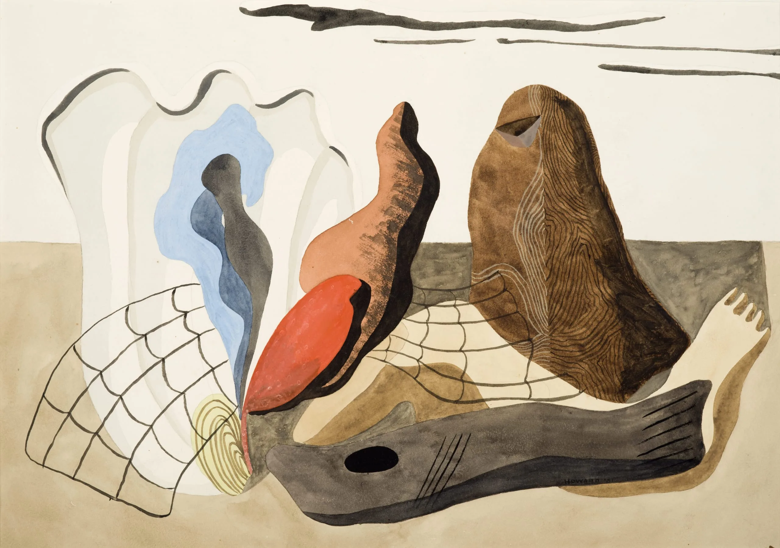 - Gouache and watercolor on paper
