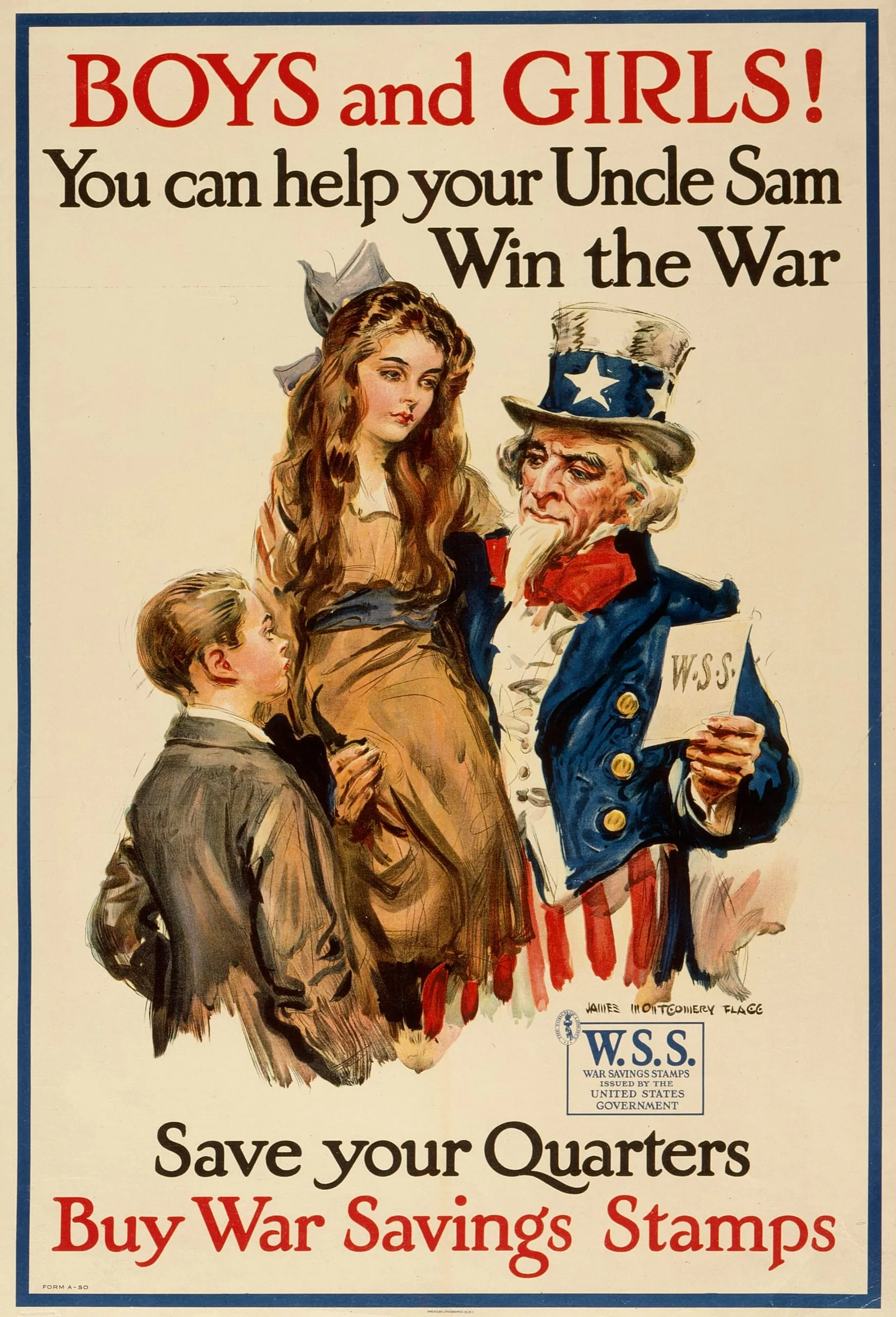 - Boys and Girls! You can help your Uncle Sam Win the War. Save your Quarters. Buy War Savings Stamps