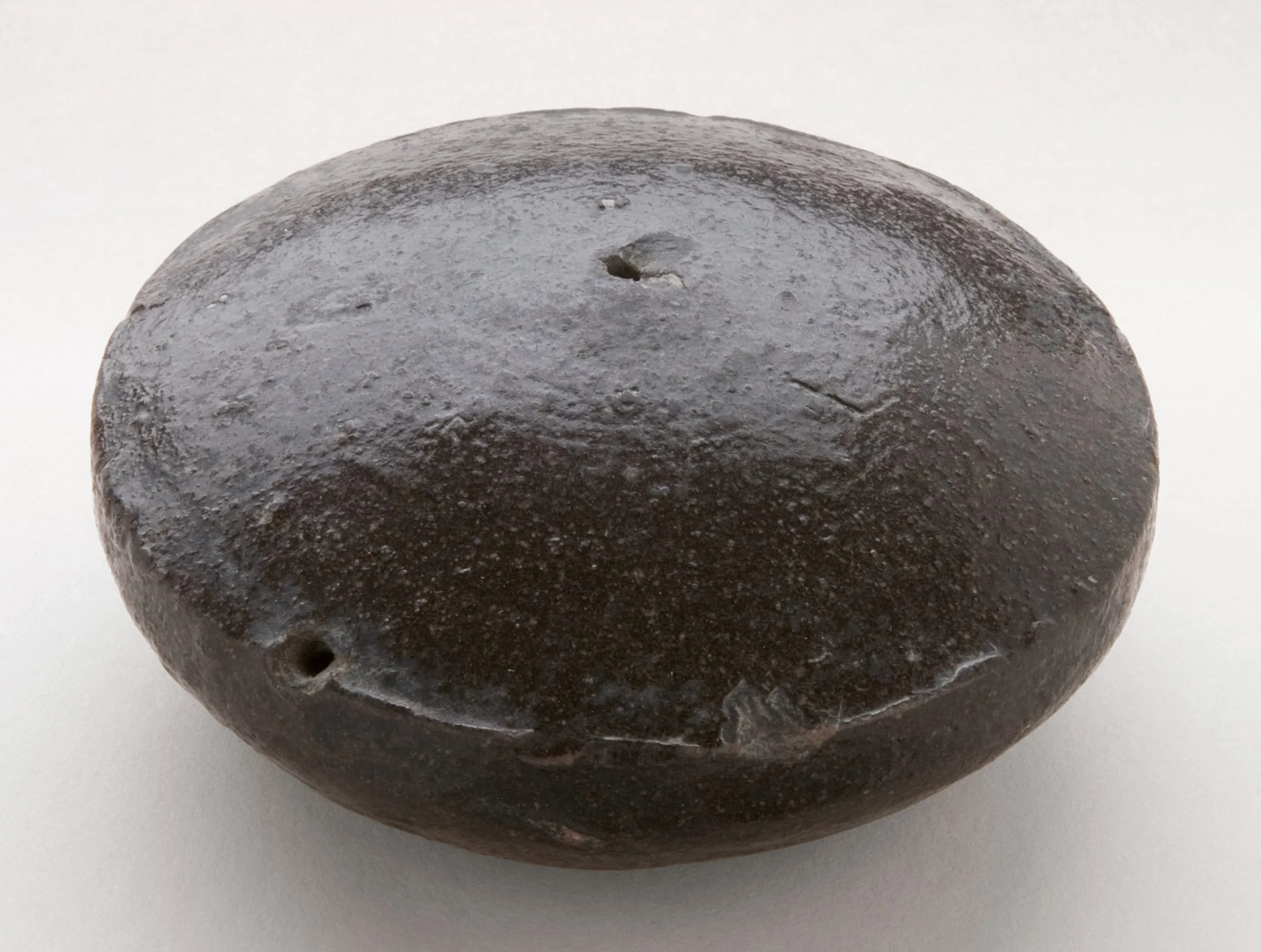 - Wheel-thrown stoneware with brown glaze