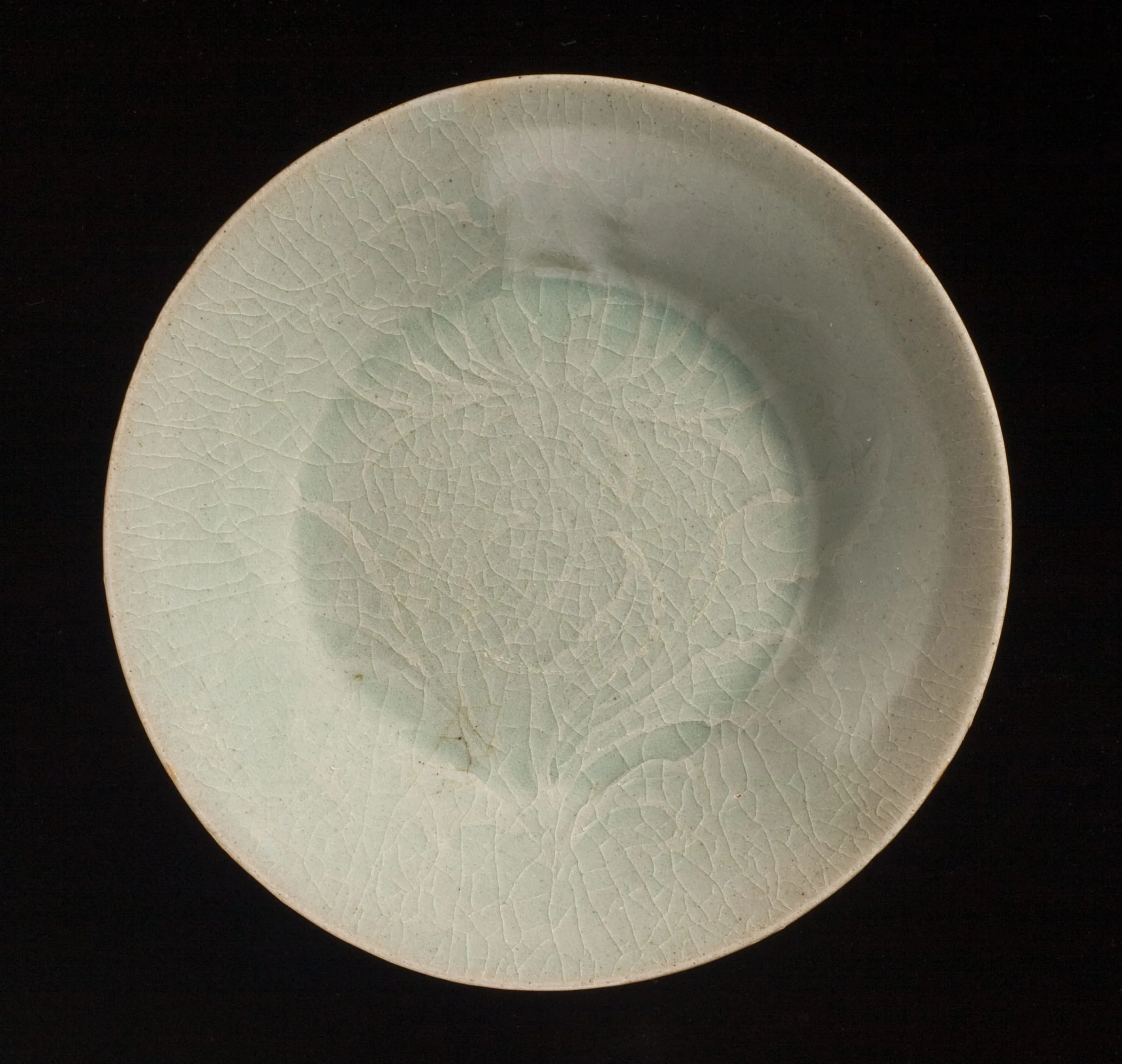 - Wheel-thrown stoneware with carved decoration and celadon glaze