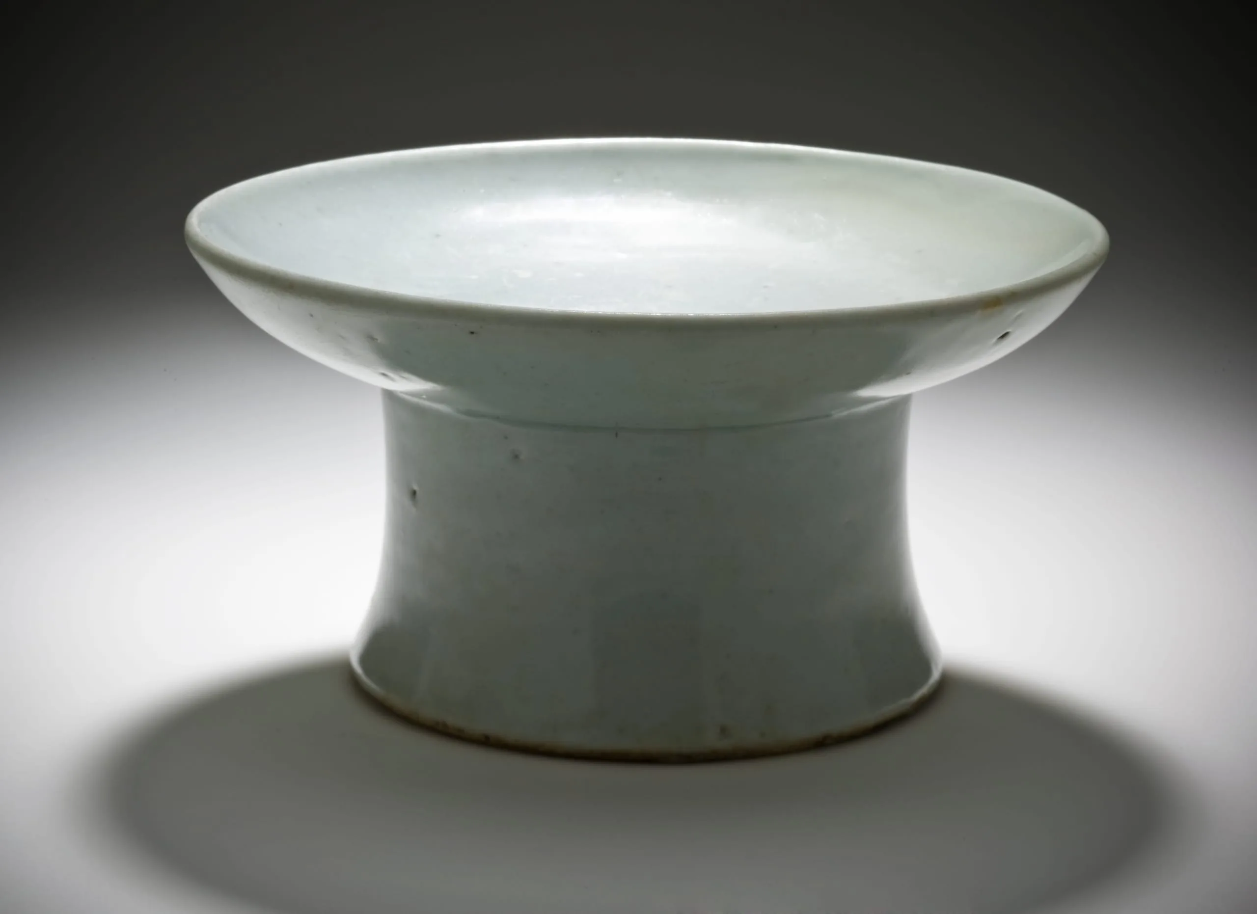 - Wheel-thrown porcelain with clear glaze