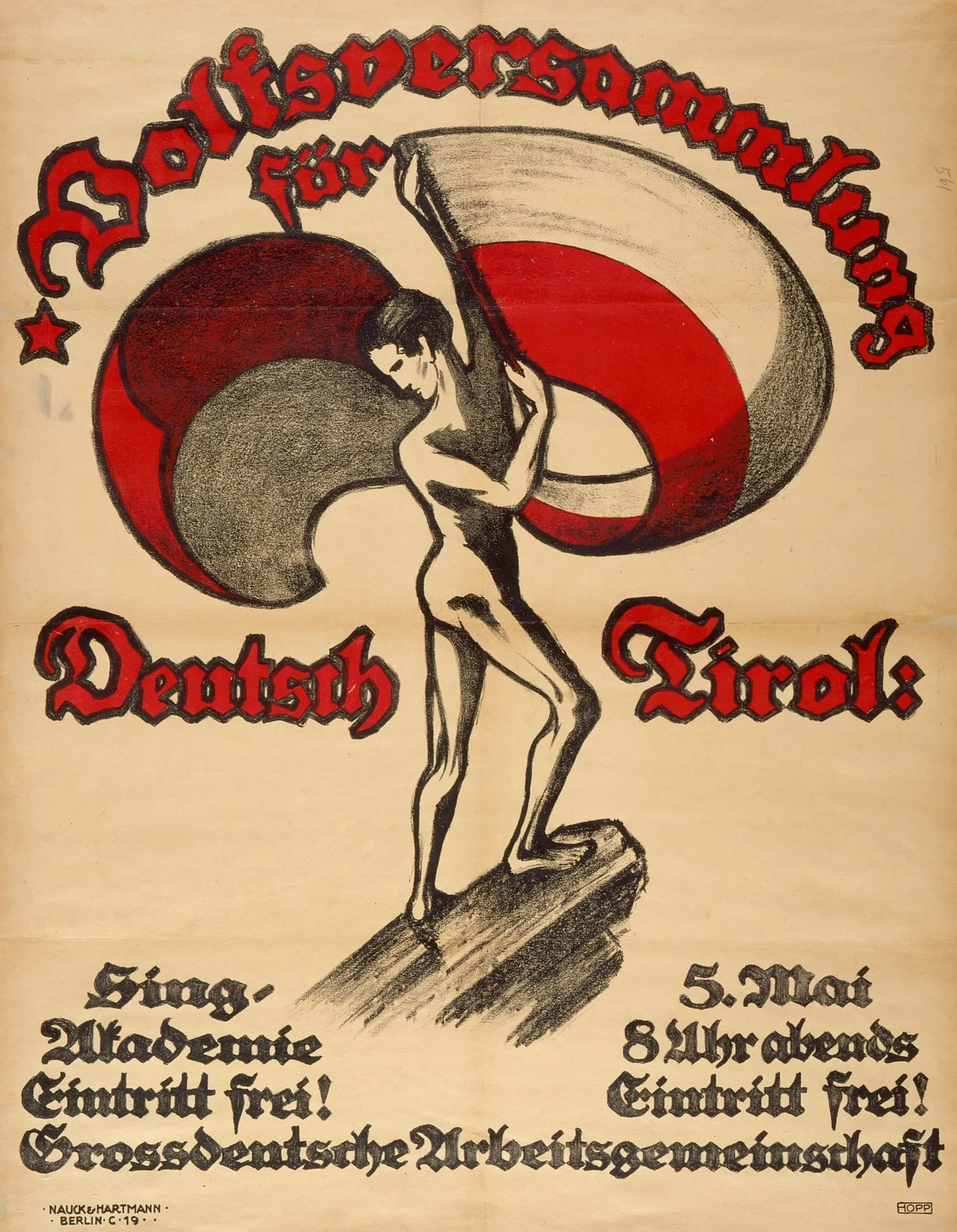- Lithograph printed in red and black on wove paper mounted on linen