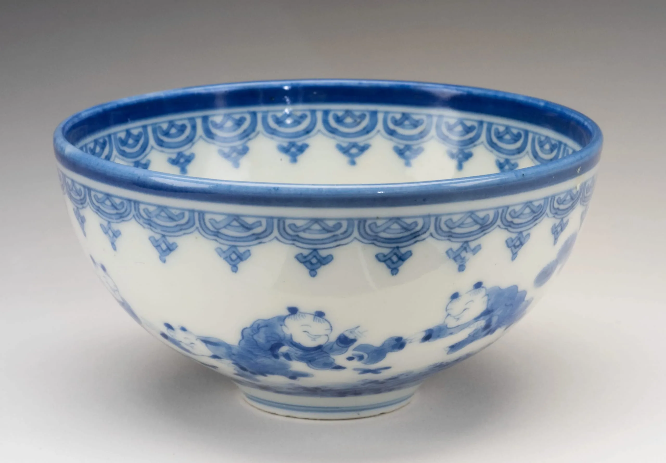 - Tea Bowl with Five Chinese Boys and Pine Decor