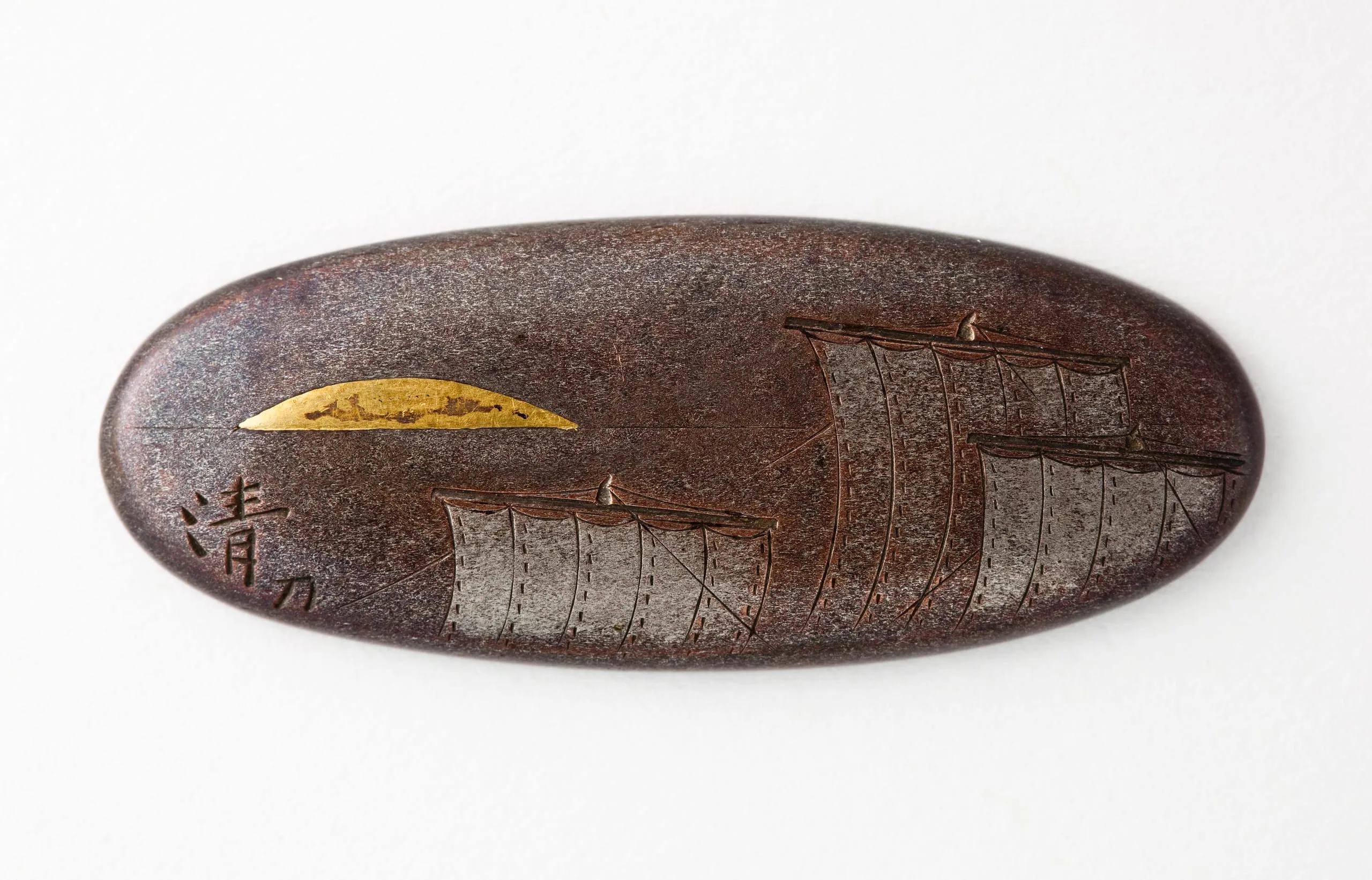 Metal ornament with Design of Boat Sails and Setting Sun