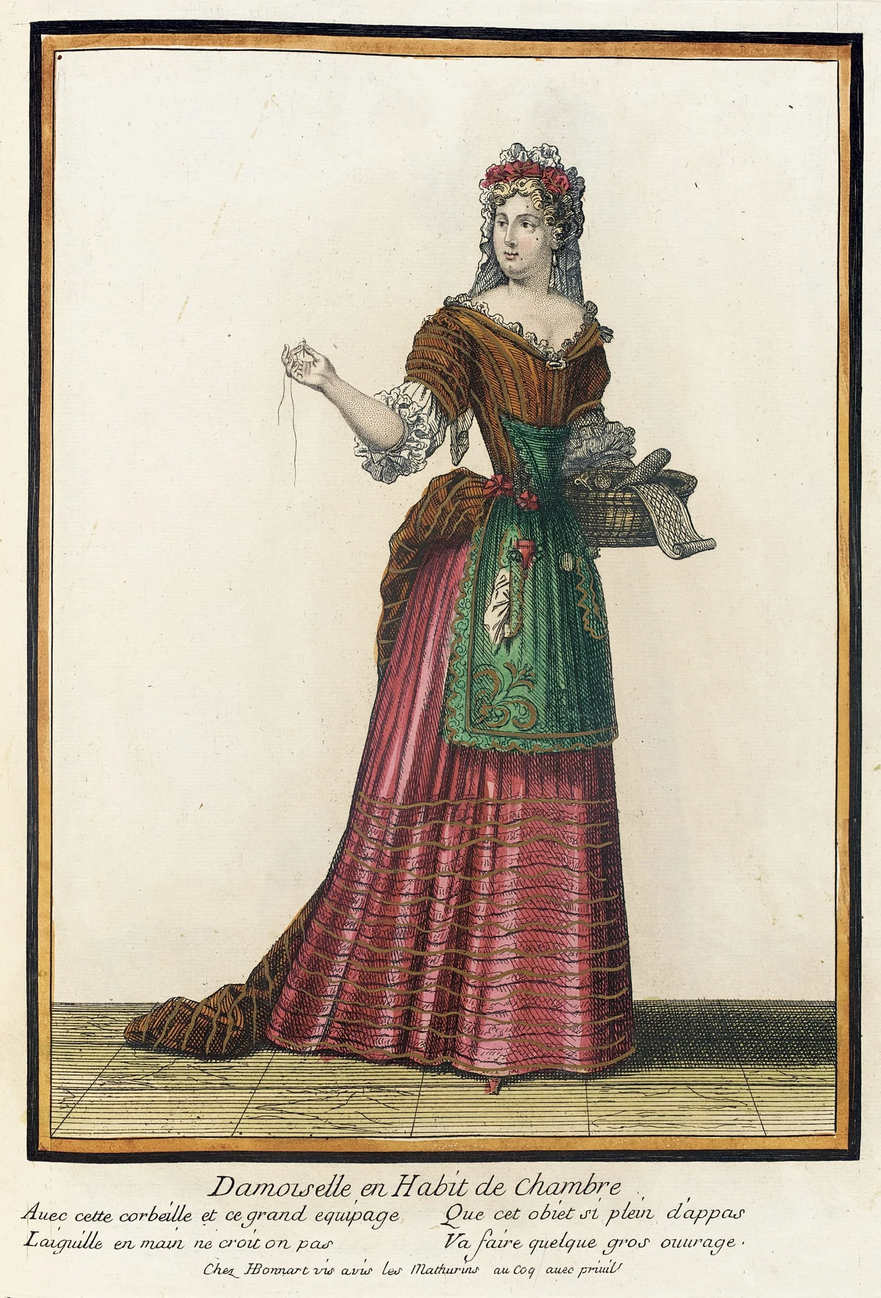 Recueil des modes de la cour de France, 'Damoiselle en Habit de Chambre'